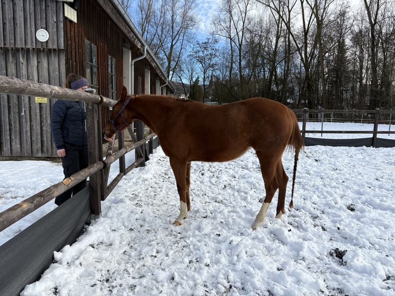 Dolly ist eine schicke 3 jährige QH Stute noch nicht geritten, kennt Bodenarbeit und longieren mit dem Sattel. Haben angefangen Trail in Hand und Showmanship da sie ihrem Alter entsprechend noch Zeit Brauch. 7 Panel Test n/n