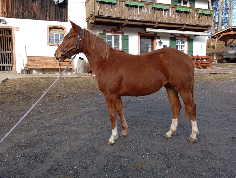 Serafina kam als ein paar Wochen altes Fohlen bei Fuß ihrer Mutter zu uns und ist in unserer Herde zu einer selbstbewussten und freundlichen jungen Stute herangewachsen. Sie ist 5 Panel N/N über die Eltern, beherrscht das Fohlen ABC und benimmt sich anständig bei Hufschmied und Tierarzt. Sie ist flink und wendig und bringt aufgrund ihrer Abstammung sicher Talent für die Cowhorse mit. Ihre Mutter wurde auf der Matese Ranch in Italien gezogen, die bekannt für die Zucht von guten Cowhorse ist. Ihr Vater DARK ICE ist ein Sohn von GUNNER ON ICE und wurde/wird von Markus Schopfer geshowt. Sie ist noch roh, altersentsprechend gut erzogen, waren jetzt ein paarmal mit ihr an der Hand in unserem kleinen Trailparcour, dort macht sie alles unerschrocken mit, es scheint ihr Spaß zu machen. Wird ab jetzt mit Bodenarbeit und anreiten gestartet, Preis steigt mit fortschreitendem Ausbildungsstand Weitere Infos gerne telefonisch: 0174/3028346