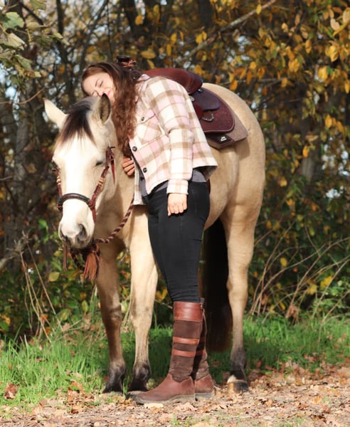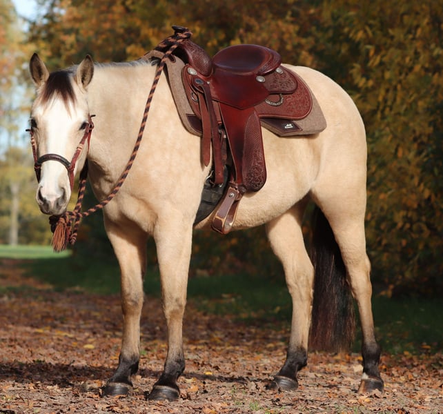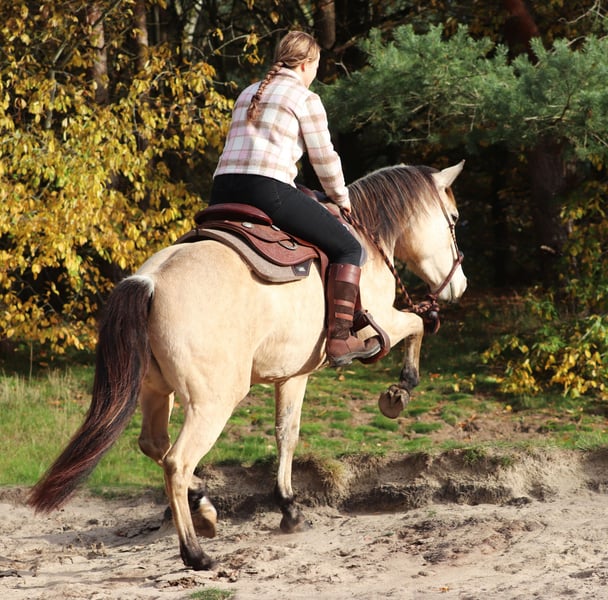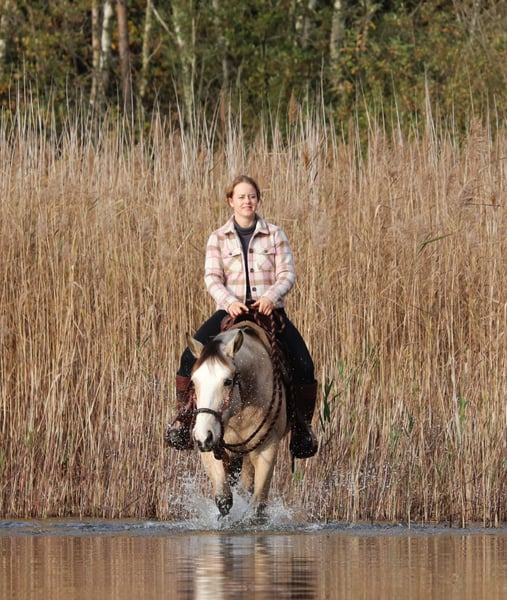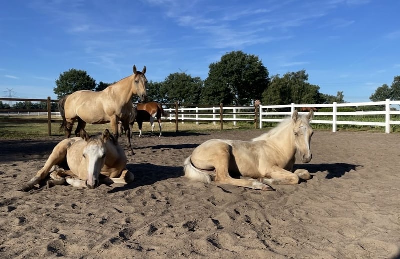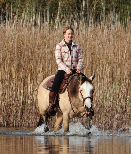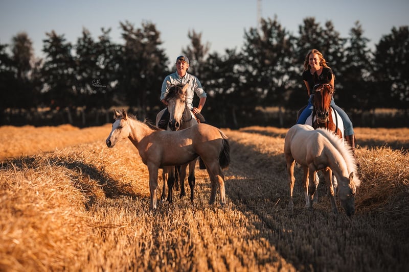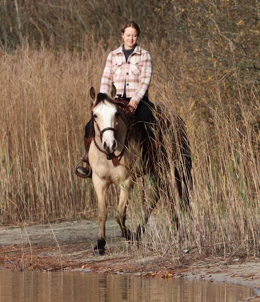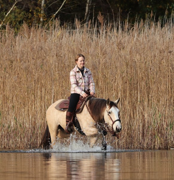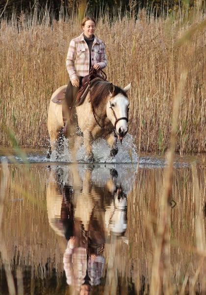 Philadelphia – eine zauberhafte junge Falbstute mit großem Herz und viel Talent Philadelphia ist eine wunderschöne, 3-jährige Falbstute mit einem aktuellen Stockmaß von aktuell ca. 1,48 m. Sie wurde an einem strahlend sonnigen Tag bei uns geboren und durfte ihre gesamte Jugend im Herdenverband auf weitläufigen Weiden verbringen – ein gesundes, artgerechtes Aufwachsen, das man ihr heute in jeder Situation anmerkt. Sie ist nicht nur optisch ein echter Hingucker, sondern beeindruckt vor allem mit ihrem liebevollen Charakter, ihrer Neugier und ihrer enormen Lernbereitschaft. Philadelphia wurde dieses Jahr behutsam und schonend im Rahmen des Natural Horsemanship angeritten. Sie versteht schnell, sucht immer die Verbindung zu ihrem Menschen und zeigt sich bereits jetzt als verlässliche junge Partnerin. Schon früh begleitete sie und sicher als Handpferd ins Gelände – Ausflüge auf Feldwegen und durch den Wald meistert sie gelassen und voller Vertrauen. Ein besonderes Talent bringt Philadelphia in der Freiarbeit mit: Sie läuft zuverlässig auf dem freien Zirkel, reagiert fein auf Körpersprache und kommt freudig auf Zuruf. Zudem beherrscht sie bereits die Ansätze des spanischen Schritts sowie das Ablegen. Diese natürliche Verspieltheit und ihr hoher „Will-to-please“ machen jede Trainingseinheit mit ihr zu etwas Besonderem. Auch unter dem Sattel zeigt sie sich angenehm und unkompliziert. Beim Aufsteigen zeigt sie eine besonders praktische Fähigkeit – sie parkt auf Kommando an der Aufstiegshilfe ein und wartet geduldig, bis man bereit ist aufzusteigen. Philadelphia ist eine Stute, die gefallen möchte und ihrem Menschen eine echte Partnerin sein will. Für ihr junges Alter bringt sie eine bemerkenswerte Ruhe und Ausgeglichenheit mit, gepaart mit Talent, Motivation und einem weichen, ehrlichen Wesen. Ich wünsche mir für sie ein Zuhause, in dem sie weiterhin liebevoll gefördert wird, wo man ihre Fähigkeiten schätzt und ihre Entwicklung mit Freude begleitet. Philadelphia wird ausschließlich in allerbeste Hände abgegeben. Auf Wunsch kann selbstverständlich eine AKU gemacht werden, und nach Absprache wird sie gerne gegen eine Spritpauschale persönlich in ihr neues Zuhause gebracht. Wenn du ein junges Pferd suchst, das durch Charakter, Talent und Herz überzeugt – dann ist Philadelphia vielleicht genau die Partnerin, die du suchst. Ihr findet uns in 49779 Oberlangen, die genaue Adresse schicke ich euch gerne nach einem persönlichen Gespräch zu. Ihr könnt mich unter der Handynummer 01624348386 erreichen. Wir nehmen uns für das Probereiten und anschauen gerne viel Zeit, damit dies in aller Ruhe und Ausführlichkeit verlaufen kann. Um sicher zu gehen, dass sich nur Leute mit ehrlichem Interesse melden und nicht wie in letzter Zeit häufiger vorgekommen, Leute als Wochenendausflug kommen, lassen wir uns diese Zeit mit einem kleinen Betrag von 50€ von euch entlohnen. Dieser wird natürlich beim Pferdekauf erstattet. Danke für Ihr Verständnis!