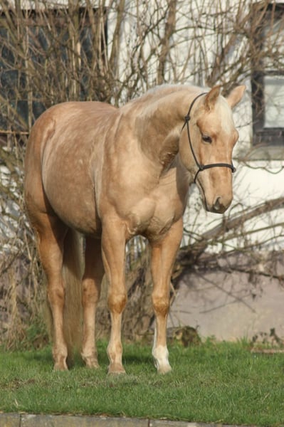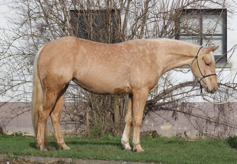 Perspektywa na przyszłość! Wspaniała roczna klacz w kolorze palomino z najlepszych linii reiningowych. Ojciec: Late Night Stopper ( Jacs Electric Spark x Best Stop ) LTE >100.000 , Matka: Spookacheka (International High Point Horse, ROM Reining; po Smart Spook x Nicacheka) Stoppin Late Night ma super budowę i dużo atletyzmu. Otrzymała ponad 82% na pokazie źrebiąt DQHA i została wiceczempionką pokazu. Zapłacona w NRHA Germany Futurity