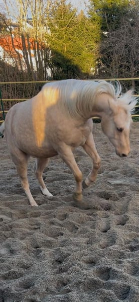 Ein echter Eyecatcher mit Charakter, Qualität und Zukunftspotenzial! Mit ihrer Palominofarbe, ihrem kompakten, kräftigen Körperbau und ihrer sehr guten Bemuskelung zieht Mobsters Trashya sofort alle Blicke auf sich. Die am 18.04.2022 geborene Quarter Horse Stute misst aktuell etwa 145 cm , ist korrekt gebaut, gesund und überzeugt mit einem hochwertigen Reiningpedigree (HF Mobster x Gunnatrashya). Beste Voraussetzungen für eine erfolgreiche sportliche Zukunft oder einen anspruchsvollen Freizeitpartner. Maggie besitzt einen lieben, menschenbezogenen und verschmusten Charakter. Sie ist zutraulich, brav und im täglichen Umgang unkompliziert, braucht jedoch klare Regeln und eine konsequente, faire Förderung. Als intelligente junge Stute möchte sie regelmäßig gearbeitet und geistig wie körperlich gefordert werden. Unregelmäßige Arbeit macht sie auf Dauer nicht glücklich. Aufgrund ihres Alters und Ausbildungsstandes ist sie daher kein Anfängerpferd, sondern ideal für ambitionierte Reiter, die Freude daran haben, ein talentiertes Nachwuchspferd weiter auszubilden. Die Stute ist leicht angeritten und war bereits mehrere Male im Gelände unterwegs. Tierarzt und Hufschmied kennt sie selbstverständlich. Sie lebt aktuell in Robusthaltung im Offenstall, kennt die Herdenhaltung, ist geimpft und regelmäßig entwurmt. Maggie ist 6-Panel n/n über ihre Eltern. Mit ihren guten Gangarten, ihrer Motivation und ihrem starken Fundament bringt sie viel Potenzial für den Turniersport mit. Sie ist in das EWU Jungpferdeprogramm einbezahlt. Ebenso ist eine doppelte Registrierung (AQHA und APHA) möglich. Ob als zukünftiges Showpferd oder als hochwertiger Freizeitpartner mit Perspektive - dieser Youngster ist ein echtes Versprechen für die Zukunft.