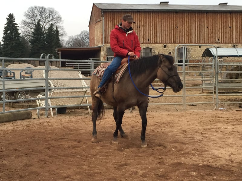 **Verkaufsanzeige: American Quarter Horse Stute** Zum Verkauf steht eine vielversprechende American Quarter Horse Stute, die im Jahr 2022 geboren wurde. Diese junge Dame besticht durch ihre außergewöhnliche Dun -Färbung und hat bereits mal ein Stockmaß von 150 cm. Sie ist bestens für den Westernreitsport geeignet und zeigt großes Potenzial in dieser Disziplin. Mit ihrem sanften Wesen und ihrer Lernbereitschaft ist sie sowohl für ambitionierte Freizeitreiter als auch für den Turniersport eine hervorragende Wahl. Diese Stute bringt alle Voraussetzungen mit, um ein zuverlässiger Partner im Sattel zu werden. Sie ist gesund, gut erzogen und bereit, mit ihrem neuen Besitzer durchzustarten. Bei Interesse freuen wir uns auf Ihre Nachricht, um weitere Details zu besprechen oder einen Besichtigungstermin zu vereinbaren.
