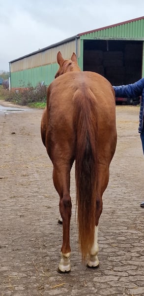 Spook N Honey - bildhübsche Jungstute, 2022 geboren mit einem geschätzten Endmaß von 150 cm, mit einem Charakter zum Dahinschmelzen. Sie kommt sofort wenn ihr Mensch auf die Weide kommt, lässt sich brav händeln und ist immer freundlich und aufgeschlossen. Die Stute durfte in Ruhe in einer kleinen Stutenherde im Offenstall aufwachsen. Kennt aber auch Box. Sie befindet sich in der Grundausbildung und ist leicht angeritten. 1- Jährig hat sie den Stadt&Dorf Trail gelassen gemeistert und 2 Jährig den Extrem Trail. Auch Anhängerfahren kennt sie und ist brav beim Tierarzt und Hufschmied. Honey weiß sich zu präsentieren. Eine vielseitige, liebe Partnerin, die sowohl im Sport als auch in der Freizeit begeistert wird!. Sie besitzt eine tolle Cutting/Allround Abstammung und wird mit vollen AQHA Papiere abgegeben. Eine klinische AKU wird im Rahmen des Verkaufes von der Züchterin in Auftrag gegeben. Ihr Preis steigt bei zunehmendem Ausbildungsstand.