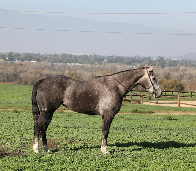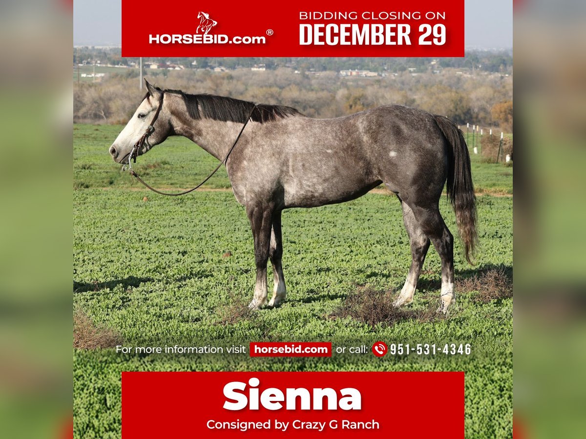 ⚜️𝐓𝐇𝐄 𝓗𝓮𝓻𝓲𝓽𝓪𝓰𝓮 𝐖𝐢𝐧𝐭𝐞𝐫 𝓒𝓵𝓪𝓼𝓼𝓲𝓬⚜️ Happening now thru MONDAY | DECEMBER 29th - Available EXCLUSIVELY on HorseBid's website! For more details and to register visit: www.Horsebid.com CONSIGNOR CONTACT: Crazy G Ranch 951-531-4346 LOCATION: Norco, CA BREED: Quarter horse REGISTERED: Yes REGISTERED NAME: Royalties Trickster COLOR: Dapple grey HEIGHT: 15.1 AGE: 3 GENDER: Mare Royalty’s Trickster 2022 Registered Quarter Horse Mare Barn Name: Sienna Color: Dapple Grey Royalty’s Trickster, known as Sienna, is a beautiful dapple grey Quarter Horse mare who is ready to continue her riding future. She lopes nice, consistent circles, rides well in the bridle, and has plenty of trail miles, making her confident and reliable in new situations. Sienna is not fully finished but would make an excellent prospect for a teenager or an intermediate rider and above. She has the athletic ability and versatility to excel as a jumper, rodeo prospect, or ranch horse. She has been ridden both western and English, is a true jump-on-and-go type, and does not require lunging. Sienna does not get fresh, even with time off. She has never offered to buck, rear, or bolt. Super personable and easy to be around, Sienna is not mare-ish and enjoys her job. A kind, willing mare with looks, brains, and a great attitude.