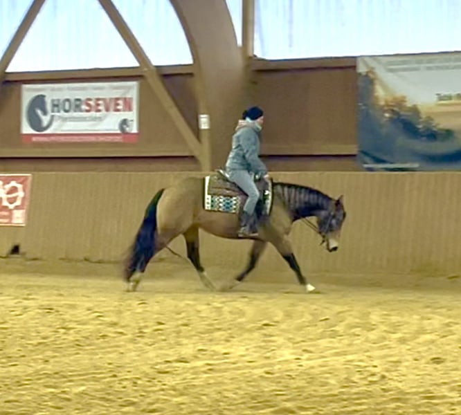 ⚜️ Gunna Spark Again ⚜️ 2021 QH Buckskin Stute 148 cm Panel Test n/ n und iMM ebenfalls n/n Bildschöne im QH Typ stehende Stute vom legendären Million Dollar Sire Gunner Dun It Again Aus einer direkten Steadys Dude Stute x Shining Spark. „Sparky“ ist im Umgang total unkompliziert - Sie ist leicht nachzureiten und auch für Anfänger / Jugendliche geeignet. Nach ihrer Grundausbildung kam sie zu den jetzigen Besitzern, die sie als reines Freizeitpferd genutzt haben. Sie hatten den Traum sie als Zuchtstute einzusetzen. Leider muss Sparky wegen schwerer Krankheit der Besitzer abgegeben werden. Ein gutes zu Hause steht für sie an erster Stelle. Sparky steht aktuell bei uns um sie Trainingstechnisch aufzufrischen und sie i.A . Zu verkaufen. Sie wünschen sich für Sparky ein zu Hause als Familienpferd für Freizeit /ambitionierten Freizeitreiter oder wegen ihrem Exzellenten Papier als Zuchtstute . Sie hat keine Reining Ausbildung ( Basics lernt sie gerade kennen ) Im Gelände ist sie noch unerfahren. Insgesamt ist sie Charakterlich Ein ruhiges Pferd, dass nicht jeden Tag laufen muss , sie fährt sich nicht hoch - sie hat absolut keine Unarten wie wegrennen / steigen / bocken und verzeiht Fehler des Reiters. Wenn sie sich erschreckt dann auf der Stelle. Wer ein Traumpferd mit Potential sucht zum weiter Ausbilden oder sie als Zuchtstute einsetzen will ist bei Sparky genau richtig. VIDEO : https://youtube.com/shorts/k7IXJ3j-8gY?si=hSeW5aqUMbeg0OuV Preis : 15.500€ vhb. Für ein Probereiten nehmen wir uns gerne Zeit und berechnen 40€ .