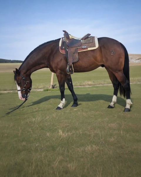We are offering LA CUSTOMBLACKSPOT, a beautiful 4-year-old Quarter Horse mare with strong Reining bloodlines and an excellent mindset. She is by Colonel Shining Gun and out of PC Customblack Widow, ridden by Manuel Cortesi with LTE $50,000. The mare is currently in training for the 2026 Derby. She has never been shown, due to circumstances not related to the horse. She shows all Reining maneuvers, is soft, willing and very rideable, with a calm and reliable temperament. Suitable for ambitious amateurs under trainer supervision or as a competition prospect. Standing 160 cm, she is correctly built, athletic and eye-catching, with three white socks, a white face and crystal blue eyes. Due to the death of the dam, she is the only available female offspring, making her also a very interesting future broodmare. A mare with double potential: sport today, breeding tomorrow. A smart and accessible investment.