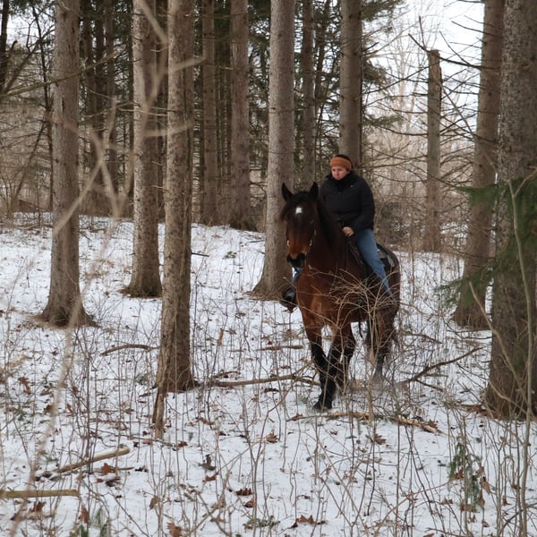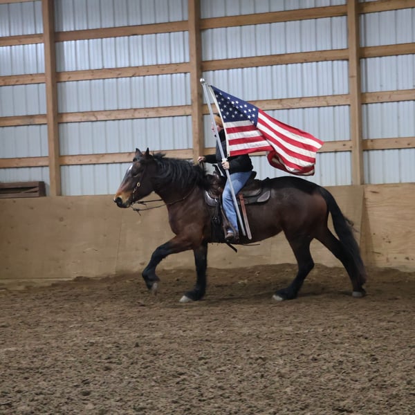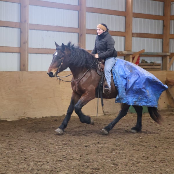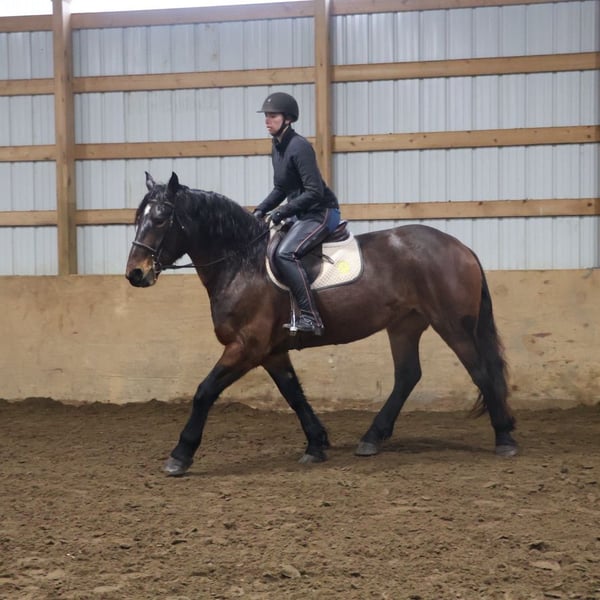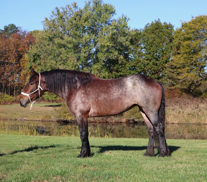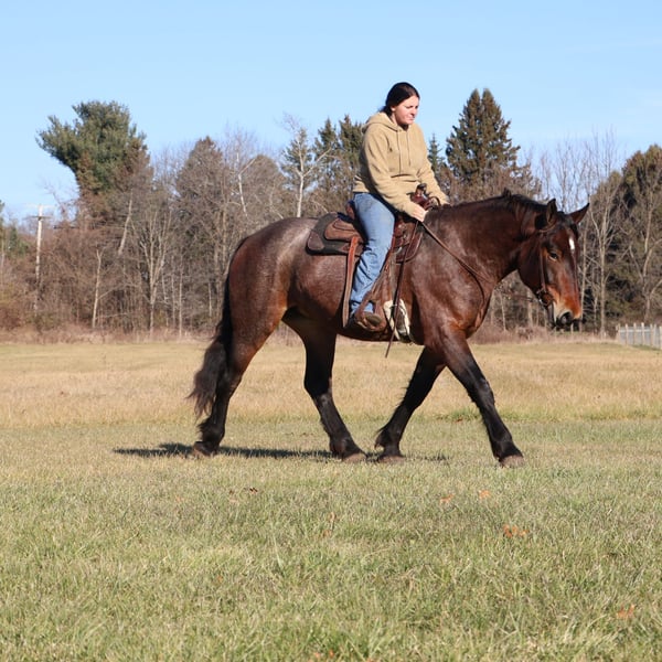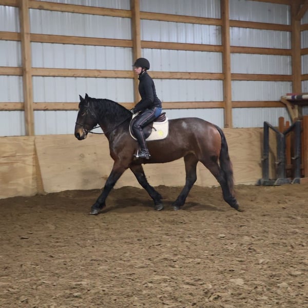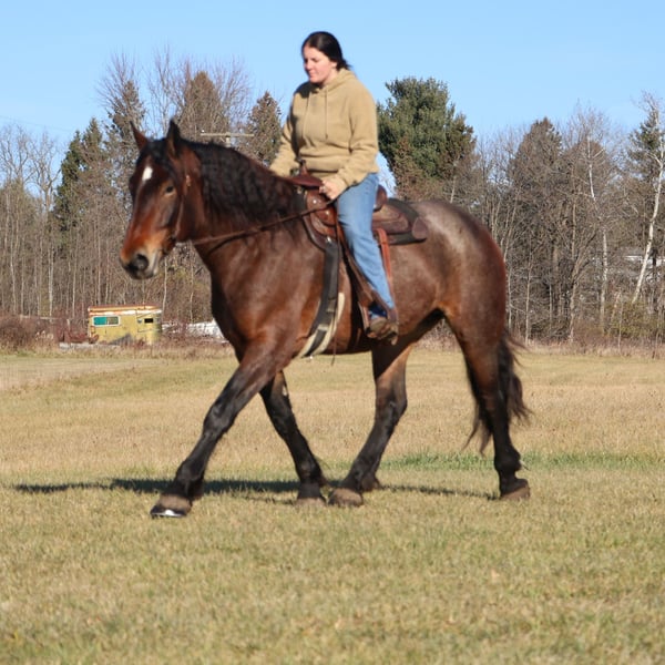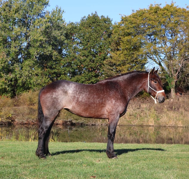 𝐉𝐀𝐍𝐔𝐀𝐑𝐘 ⭐️𝑨𝒍𝒍 𝑺𝒕𝒂𝒓 𝑳𝒊𝒏𝒆𝒖𝒑⭐️ Happening now thru MONDAY | JANUARY 26th - Available EXCLUSIVELY on HorseBid's website! For more details and to register visit: www.Horsebid.com CONSIGNOR CONTACT: Blackstone Stables 248-390-6831 LOCATION: Howell, MI BREED: Brabant Quarter Horse Cross REGISTERED: No REGISTERED NAME: Ruby Slipper COLOR: Bay Roan HEIGHT: 16.1hh AGE: 5 GENDER: Mare Ruby Slipper or Ruby as we call her around here is a 16.1hh bay roan Brabant Quarter Horse Cross. She is a solid made but yet very athletic girl. Ruby is 5 years old. Ruby is very well broke to walk, trot and canter. She is a total kitten in the barn and out in the pasture. She's playful and inquisitive while being calm and loving. Ruby is not the mareish type. She goes out in a group and plays well with all others while being easy to catch any day anywhere! Ruby has delightfully comfortable and balanced gaits. She has a quiet walk, a floaty trot and a canter you will melt right into, she takes both leads and her breaks are good! She comes equipped with all the flat work buttons you could want. She has also been started over fences and is doing amazing. Ruby has been through our whole desensitization program and passed every challenge with flying colors. She will walk-through pool noodles over bridges tarps. She will pull a sled and carry a flag. Out on the trails she will remain as levelheaded as they come take her for a gallop through a big open field or a walk in the woods. She's happy to do whatever you ask. She has been exposed to water wildlife and traffic all with no issues. She is also broke to drive. This is an all-around girl that will excel in anything from working equitation, to a trail horse or as a hunt horse, cross country mount or that all around horse the whole family can enjoy. You can take her out and have a blast but yet trust her when beginners come over to go for a ride! She's available for a private sale now!