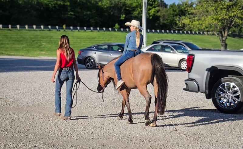 ONLINE AUCTION Place your bids at www.PlatinumEquineAuction.com Starting Bid $3500 Auction ends June 22nd, 2025 Need a new saddle? Check out White Rock Saddles on our website or Facebook! Poco is a stunning, bay roan, 5 yr old, 13.3-hand Quarter Pony mare, that turns heads wherever she goes. With her long, flowing mane and tail, stocky build, and eye-catching coloring, she’s the total package in a pint-sized powerhouse. She’s the perfect in-between size—small enough to make kids feel confident, yet sturdy enough for the adults to enjoy as well. Poco is truly a horse the whole family can enjoy. She’s logged countless trail miles and handles rough terrain like a pro—crossing water, climbing hills, and confidently leading the way like she owns the trail. She’s happy going out solo or splitting off from the group without hesitation. Got snacks or a trail soda to pack along? Poco has you covered! She’s carried her fair share of saddle bags down the trail the past few years and answered the call to be my trusty mushroom-hunting partner this past spring as well. This means that her and I packed out by ourselves through the woods for hours, she stood tied to trees while I walked around looking for gold and we came back with plastic bags dangling off her full of mushrooms. She never batted an eye! But Poco’s not just a trail queen—she’s also super fun in the arena. Western or English, she’s game for both! She’s smooth, balanced, and an absolute dream to lope circles on. With a great handle, neck rein, soft response to leg cues, and a stop that’ll make you grin, she’s as broke as they come. She has been used to check pastures with longhorn cattle even bigger than her, and she never flinched an inch. She’ll drag a calf, log, barrel, whatever your heart desires. Needing a gaming or breakaway pony? Poco can answer the call for that as well! She has a great start on both the barrel and the pole patterns, but will also track a calf and stop on a dime. So go get yourself a rope and have some fun! Poco is quiet, kind, and as steady as they come. She’s seen the fun show scene, flags, tarps, ropes, chickens, dogs, traffic, and kids—and she takes it all in stride. She’s easy for the farrier, good for baths and brushing, stands tied, loads/unloads great, and rides just as nicely bareback as she does under saddle. Whether she’s in a stall or out in the pasture, Poco settles in without a fuss. If you’re looking for a safe, versatile, and fun mare who can do it all—and look good doing it—Poco’s your girl. She’ll make a great addition to any family or even a lesson program. Poco is located in Tremont, Illinois. I’d love for you to come meet her! Call SRM Equine Shelby 309-678-7521 with any questions, to set up a meeting or discuss more about Poco. Located in Tremont, IL. ONLINE AUCTION Place your bids at www.PlatinumEquineAuction.com Starting Bid $3500 Auction ends June 22nd, 2025 Need a new saddle? Check out White Rock Saddles on our website or Facebook!