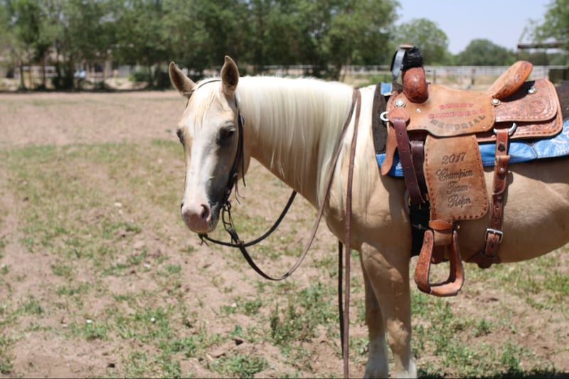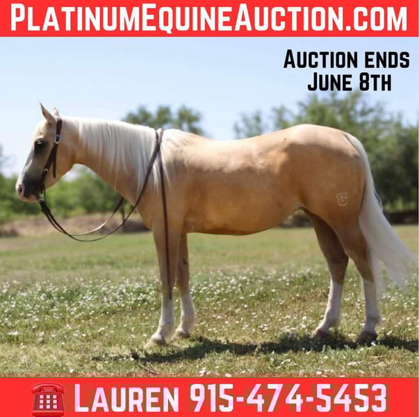 ONLINE AUCTION Place your bids at www.PlatinumEquineAuction.com Starting Bid $3500 Auction ends June 8th, 2025 Need a new saddle? Check out White Rock Saddles on our website or Facebook! Tweety is the absolute family horse! Shes SAFE SAFE SAFE! She has been the baby sitter around our place we bring her out for all the kids and beginners. From trail riding down the road or giving rides at the family parties he’s our go to. Tweety is 5 years old she stands 14’2 h tall. She’s got the coolest golden palomino color with a long mane and tail. We’ve used her also on the ranch from rounding cows up or pushing steers up at the roping practices. Shes has also been used on the heel side, she’s good in the box we’ve roped a lot on her, she’s been hauled to some lower number jackpots. She will fit anywhere from a beginner roper to a advanced. She knows her leads, she will lope big pretty circles. Shes been around the barrels, flags, tarps, traffic, she’s absolutely safe for any level rider will be safe everyday of the week and 100% reliable. Tweety is easy to shoe, saddle , bathe , load and haul with no issues. She will be straight legged no bumps or blemishes and 100% sound. If you are looking for your next family horse tweety is your girl don’t miss her. Located in El Paso, TX. Contact Lauren Lara 915-474-5453 with any questions. ONLINE AUCTION Place your bids at www.PlatinumEquineAuction.com Starting Bid $3500 Auction ends June 8th, 2025 Need a new saddle? Check out White Rock Saddles on our website or Facebook!