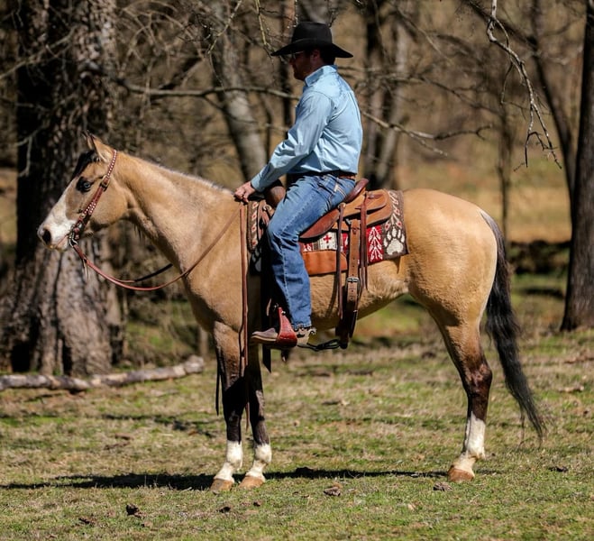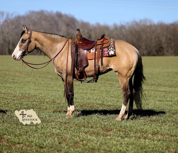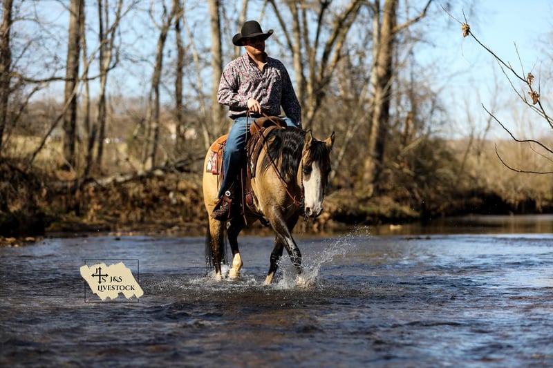 ONLINE AUCTION Place your bids at www.PlatinumEquineAuction.com Starting Bid $3500 Auction ends March 30th, 2025 Need a new saddle? Check out White Rock Saddles on our website or Facebook! Check out Miss Nevada!! Although this Buckskin beauty looks like she is competing for the Miss America crown she is ready to get down and dirty on the ranch or on the trails! Nevada is an adorable 15-15.1hh Quarter Horse mare that is 5 years old. This lady has done it all from roping out of the box to pasture roping. She has been hauled to team sortings and had 2 months of professional cutting training working on the flag. Nevada has been used daily on the ranch, she has sorted, doctored and rode fences. She has penned cattle at the sale barn and worked on a feedlot as well. This mare has a lot of handle and is one hand broke! She will really ride around and has all of the right moves! She lopes nice circles, takes her leads and has a good stop! She will cross creeks, ditches, logs and navigate rough rocky areas. She has been ridden many miles in the mountains and encountered every obstacle possible on the trail. Nevada is a do it all type of horse than anyone should appreciate! If you have any questions, would like to make a Buy It Now Offer or set up a Facetime Call, contact J & S Livestock JT 931-698-7159 Located in Santa Fe, TN. ONLINE AUCTION Place your bids at www.PlatinumEquineAuction.com Starting Bid $3500 Auction ends March 30th, 2025 Need a new saddle? Check out White Rock Saddles on our website or Facebook!