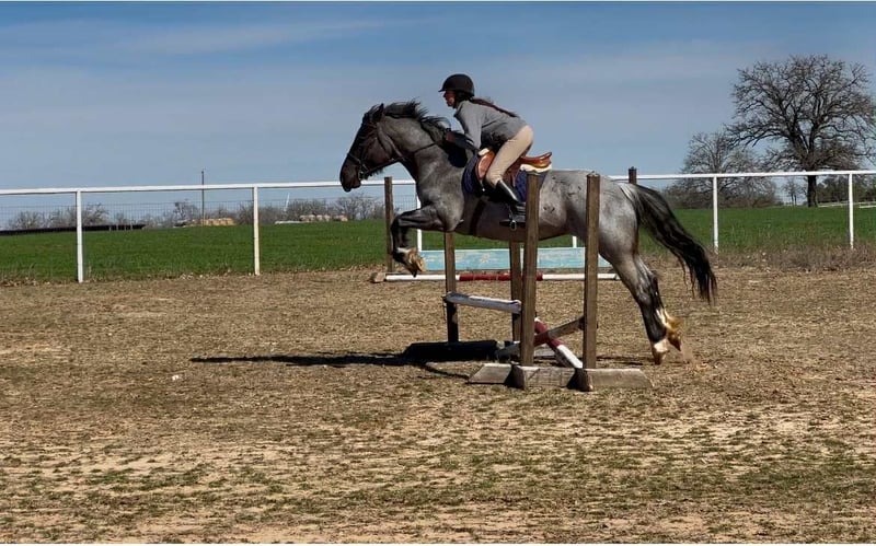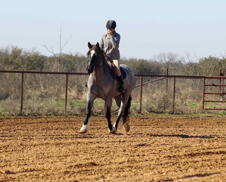 ONLINE AUCTION Place your bids at www.PlatinumEquineAuction.com Starting Bid $3500 Auction ends November 23rd, 2025 Need a new saddle? Check out White Rock Saddles on our website or Facebook There are good mares, there are pretty mares… and then there’s Blue Bell. A 2020 model registered Shire Sport Horse, this true blue roan draft cross mare stands 15.2 hands of pure presence. She’s the kind that makes you stop mid-sentence and stare — deep blue coat, big bone, and that quiet confidence that says she’s done a few things in her life. For the past two years, Blue Bell has been the get-it-done kind — penning cattle, loading trucks, checking fences, and sorting pairs. She’s seen a full day’s work and still walks back to the trailer with her ears up. She’s got the grit of a ranch horse and the grace of a show horse, wrapped in one stunning package. Don’t box her in, though — Blue Bell rides both English and Western, and she’s already started over jumps like she’s been doing it her whole life. She moves free and fancy, soft in the bridle, with a lope you could ride into the sunset. She’s been hauled to rodeos, ranches, and even the Fort Worth Stockyards, where she handled the traffic, wagons, and chaos like she was born for it. On the trails, she’s the steady lead horse everyone follows — crossing water, bridges, and brush without ever second-guessing her rider. In the arena, she’s a looker — low-headed, smooth, and stylish. She’ll walk, trot, and lope correct circles, has a big stop, and carries herself with pride. Blue Bell is sweet to her core — the first to meet you at the gate and the last to complain. She hauls, ties, stands for the farrier, and gets along anywhere you put her. This mare has talent, temperament, and tons of try. She’s the kind you can rope on in the morning, take to town in the afternoon, and ride English on Sunday. Blue Bell — because not all blue roans are created equal. We are open to anyone interested in her to schedule a time to come see her or if you can’t make it schedule a FaceTime showing to see her. If you need help with transport don’t hesitate to ask we have a list of reputable haulers that can get her safely to your doorstep WORLD WIDE including, Alaska , Mexico, Hawaii, Canada and anywhere in between from Stephenville, TX. Contact Michelle with M $ Performance Horses 661-817-9120 with any questions. ONLINE AUCTION Place your bids at www.PlatinumEquineAuction.com Starting Bid $3500 Auction ends November 23rd, 2025 Need a new saddle? Check out White Rock Saddles on our website or Facebook