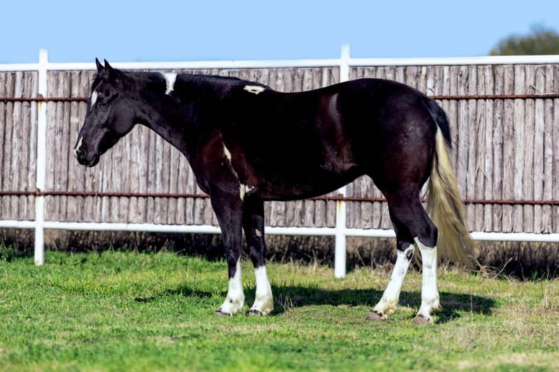 ONLINE AUCTION Place your bids at www.PlatinumEquineAuction.com Starting Bid $3500 Auction ends March 9th, 2025 Need a new saddle? Check out White Rock Saddles on our website or Facebook! Zora is a 14.1H, 5 yr old TRUE black overo paint mare. This GORGEOUS mare has one of the SWEETEST personalities around. She is a super fun, willing to please all around mare! She loves riding outside and also has potential in the arena to go in any direction! She’s been owned by the same people her whole life where they just used her to pleasure ride! Zora is talented enough to go on to make a great youth prospect or trail horse for someone looking for a fun one to enjoy! She rides good, knows all the major basics and is ready to go on with! She walks, trots and lope when asked and stops good! She’s not spooky, no buck, bolt or rear and is easy to get along with! She absolutely loves attention and will be the first one to greet you in the barn or pasture! Zora naturally takes to all new things and is very bravely adventurous. She is safe and gentle, loads, leads and bathes great! She would be the perfect addition to any family looking for a fun one to go one with in any discipline! She’ll go all day without a complaint! Don’t miss this sweet, fun, willing to please STUNNING black and white mare. They don’t come around colored like her often with her personality and potential! More pics and videos on her website page at northtexashorsecompany.com/zora. Please call Blair with North Texas Horse Company for more info at 817-757-3046. We are located in Weatherford, TX and can help arrange affordable shipping to anyone!! ONLINE AUCTION Place your bids at www.PlatinumEquineAuction.com Starting Bid $3500 Auction ends March 9th, 2025 Need a new saddle? Check out White Rock Saddles on our website or Facebook!