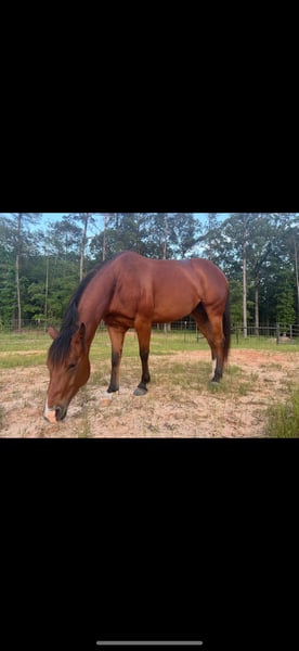 Clean legs and sound. She is ready to find her new show partner and make it big in the ring. She has been handled daily, lunges, loads and hauls. She’s turned out with a mare and gelding and acts like the head mare. Super easy to handle, be around, and enjoys exploring her surroundings.