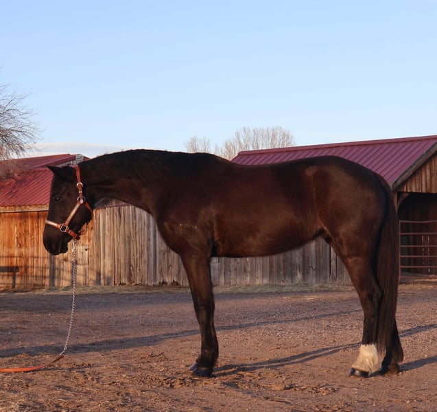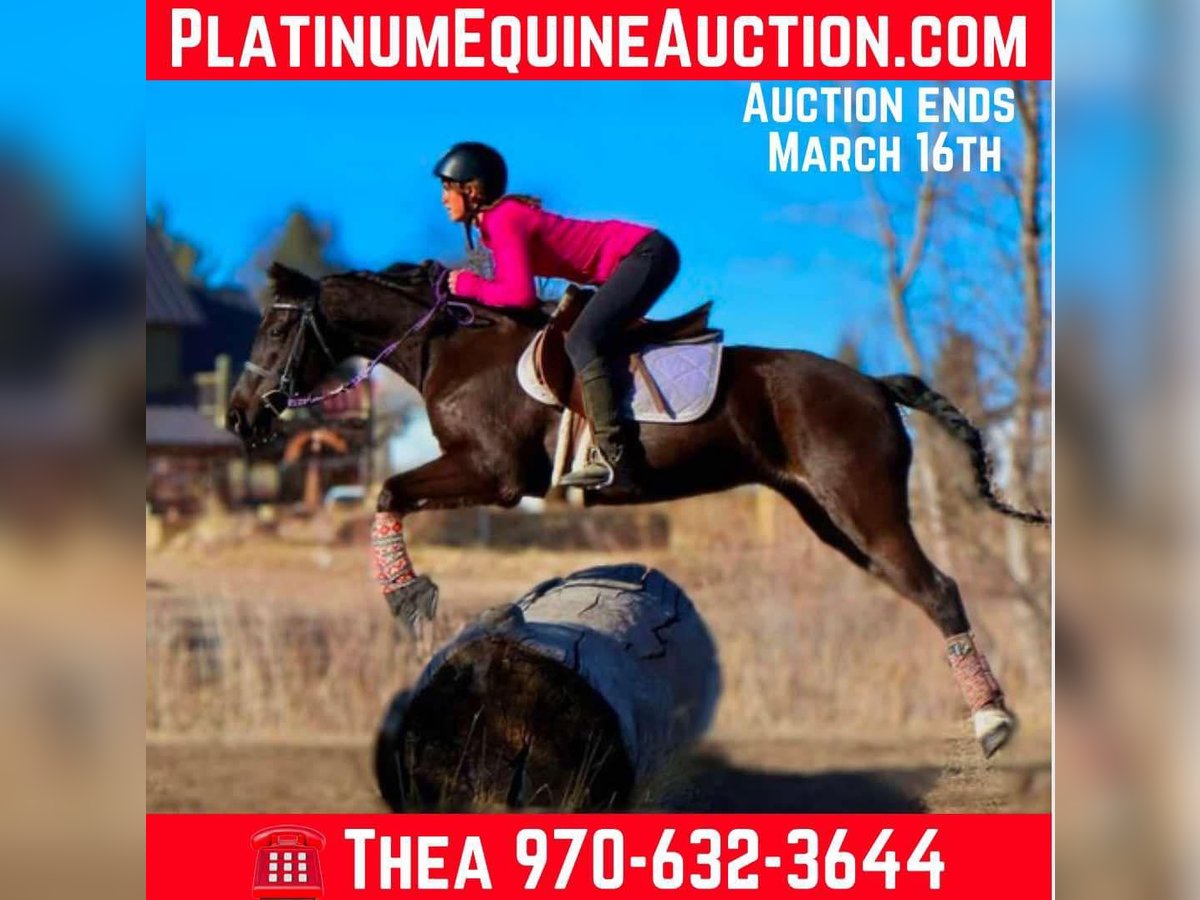 ONLINE AUCTION Place your bids at www.PlatinumEquineAuction.com Starting Bid $3500 Auction ends March 16th, 2025 Need a new saddle? Check out White Rock Saddles on our website or Facebook! Raja is a 6 year old jet black Quarter pony who stands at 14 hands and has an absolute heart of gold! This pony has a ton of try, is extremely sweet, first one to meet you at the gate and gets along with all other horses and livestock! Raja is VERY safe, calm and sweet for the whole family but is also versatile enough to be competitive in lots of disciplines. Raja has a great walk/jog/lope in the arena, will stop off of just your voice and is light and supple in the bit. Raja goes English or western and knows her collection and frame up, has great tuck and scope over a course and has already jumped up to 2’3 with room to improve. Raja would make a very cute 4-H or pony club prospect! Raja has been trail ridden all over as well, Up in the mountains, downtown Fort Collins you name it, she’s seen it. She is excellent in a group or by herself, she is not herd bound and will lead or follow. Raja has seen bikes, lots of traffic, town commotion, wildlife, etc. Raja will cross anything you put in front of her and is not scared of flags/tarps etc! She loves the water, has crossed rivers and bridges and we’ve even taken her swimming! Raja is the absolute perfect size for a small adult or kiddos wanting to get started in their new equine adventure or further their skills and looking for a step up pony! Check out rajas video and come see this sweet mare! Located in Fort Collins, CO. Contact Dynamite Horses Thea 970-632-3644 with any questions. ONLINE AUCTION Place your bids at www.PlatinumEquineAuction.com Starting Bid $3500 Auction ends March 16th, 2025 Need a new saddle? Check out White Rock Saddles on our website or Facebook!