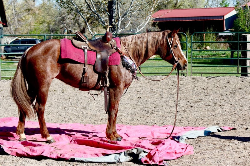 ONLINE AUCTION Place your bids at www.PlatinumEquineAuction.com Starting Bid $3500 Auction ends June 8th, 2025 Need a new saddle? Check out White Rock Saddles on our website or Facebook! Rose (registered name A Frosted Invitation) is an absolutely stunning red roan 2018 model mare with an impeccable set of papers and an even more impressive head on her shoulders. Rose is 15.2, built like a tank, has amazing confirmation and a beautiful mane and tail! This mare is easy to be around, has amazing ground manners, is first one to meet you at the gate, LOVES people and is great for the vet and farrier! Rose will stand tied all day, loads like a queen, stands for baths and tacking, picks her feet without a problem and loves being brushed and loved on. Rose has an impressive western pleasure jog and lope, works off of your legs, stops off of your seat and voice and knows all of her voice commands. Rose opens and closes gates, side passes, spins and has a quick and smooth rollback. Rose is one of the prettiest movers in the western pleasure pen! She is very slow and delicate with an amazing collection. Rose has also been trail ridden extensively and loves being out and about, she has been in town with lots of traffic and commotion or up in the mountains on hard trails and steep terrain- whatever you throw at her- she’s up for the task. Rose rides out in a group or alone and doesn’t care where she is in the pack. Rose has carried a flag, walked over tarps and tires, had balls thrown at her and dealt with a lot of chaos and commotion with ease. Rose had done basic English work as well and absolutely loves it, she knows where her feet are for the cavaletti, has had extensive feet work and even done some hunter jumper as well as been over a couple of cross country courses! (Which she absolutely adored) and has not missed or dodged a jump!! She has a lot of tuck and scope and could go extremely far in that world with some consistency. For more info contact Dynamite Horses Thea 970-632-6344 with any questions. Located in Fort Collins, CO. ONLINE AUCTION Place your bids at www.PlatinumEquineAuction.com Starting Bid $3500 Auction ends June 8th, 2025 Need a new saddle? Check out White Rock Saddles on our website or Facebook!