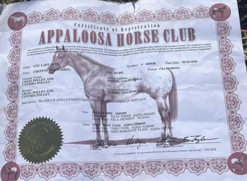 ONLINE AUCTION Place your bids at www.PlatinumEquineAuction.com Starting Bid $3500 Auction ends February 9th, 2025 Need a new saddle? Check out White Rock Saddles on our website or Facebook! CNC Lady Jaye, aka Lady, is a registered champion mare and a stunning Appaloosa. She was foaled on February 26, 2018. She stands a tall drink of water at 16.1 hands and has nice conformation. This girl is fun; she has a nice extended trot and carries herself well. She is well suited to be an English horse with her fluid movement. Lady has been used for trail riding and has been very easy to handle. She will walk up or down any trail, navigates downed trees, brush, ditches and crosses water while remaining calm. She is a friendly horse that is gentle and willing to try new things. She has gathered cattle and has also been used to check fences on the ranch. Lady has been shown in some halter classes and was a weanling champion, also placing in several other halter champion titles. She has also dabbled in some 4-H shows in trail and equitation, and has shown successfully in halter. If you are wanting to dabble in a little bit of everything, she would be a great choice for you. In the arena, she picks up her leads, has a smooth stop, and a naturally collected backup. Her movement is very fluid and pretty. She is ready to go in any direction you would like to take her. She is super willing, has no silliness to her, and just wants to be your friend. Lady has done obstacles such as tires and bridges, all with ease, and is really taking a liking to it. She is easy to shoe, clip, and bathe. She loads and hauls great and has no bad habits. Please contact Longhorn Ranch, Dina, located in Paicines, CA, at 831-537-1915. ONLINE AUCTION Place your bids at www.PlatinumEquineAuction.com Starting Bid $3500 Auction ends February 9th, 2025 Need a new saddle? Check out White Rock Saddles on our website or Facebook!