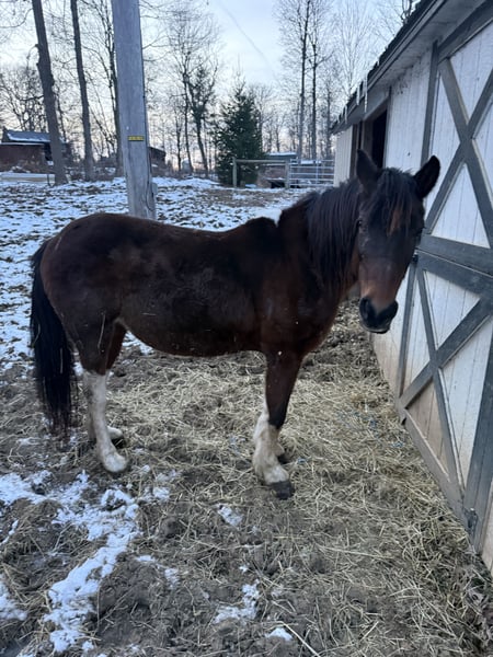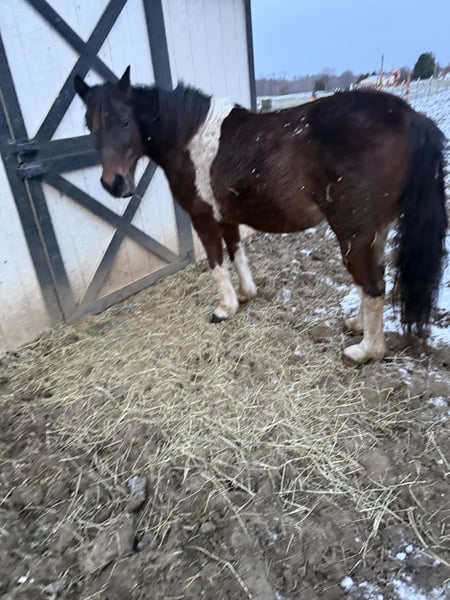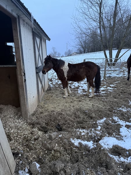 9 year old paint mare. In foal for an April foal. Very gentle mare. Very good pet. Rides good but mostly used for brood mare due to ankles being weak