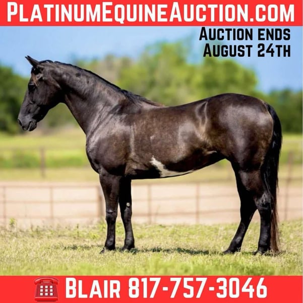 ONLINE AUCTION Place your bids at www.PlatinumEquineAuction.com Starting Bid $3500 Auction ends August 24th, 2025 Need a new saddle? Check out White Rock Saddles on our website or Facebook Ava is a GORGEOUS 14.2H, 8 yr old black and white overo paint mare. This mare has the looks that everyone dreams about!! She’s has spent her life as a pleasure/trail horse. She is more whoa than go and would be perfect for the leisurely rider exactly how she is today. Ava really has the potential to go any direction though! Take her today as a trail horse, or put a little time into her and have an amazing prospect! She is naturally gentle and really wants aims to please. Ava has been rode by all ages and beginners! She has absolutely ZERO buck, bolt, rear or take off and just wants to be a good girl! She’s extremely comfy too! She loads, leads and ties great. Ava is a little shy on the ground but as soon as she gets to know you, she’s gives you her whole heart and absolutely melts! She is current on teeth, feet and coggins and ready to go to her new family! Go to her website page northtexashorsecompany.com/ava for more pictures and footage! Please call Blair with North Texas Horse Company for more info at 817-757-3046. We are located in Weatherford, TX and can help arrange affordable shipping to anyone!! ONLINE AUCTION Place your bids at www.PlatinumEquineAuction.com Starting Bid $3500 Auction ends August 24th, 2025 Need a new saddle? Check out White Rock Saddles on our website or Facebook