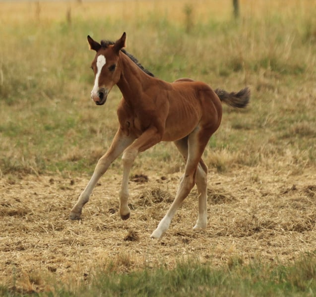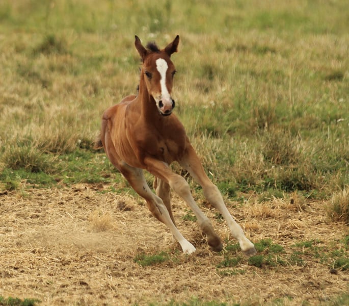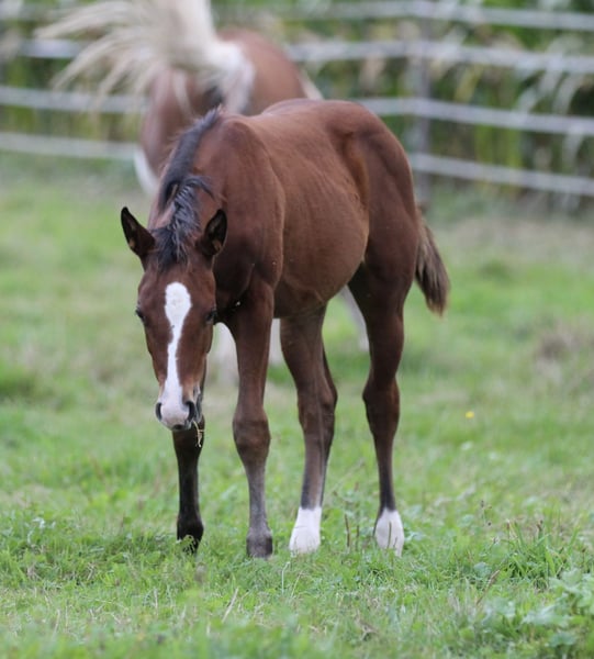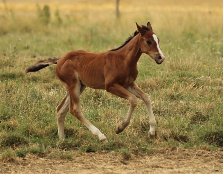 The sweet Paula is a lovable, very calm Quarter Horse filly from the best lineage. Uncomplicated and relaxed, she quickly became the champion filly at this year's DQHA foal show. With a score of 82.14%, she was awarded the 1A premium foal title and praised for her excellent conformation! Cashlight Gun SR, as Paula is named on the AQHA papers, will be ready for relocation in November and will be halter-trained upon transfer. She knows the basics of foal training, hoof care, and is microchipped, equipped with a DQHA breeding passport and AQHA Certificate of Registration.
