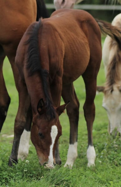 The sweet Paula is a lovable, very calm Quarter Horse filly from the best lineage. Uncomplicated and relaxed, she quickly became the champion filly at this year's DQHA foal show. With a score of 82.14%, she was awarded the 1A premium foal title and praised for her excellent conformation! Cashlight Gun SR, as Paula is named on the AQHA papers, will be ready for relocation in November and will be halter-trained upon transfer. She knows the basics of foal training, hoof care, and is microchipped, equipped with a DQHA breeding passport and AQHA Certificate of Registration.