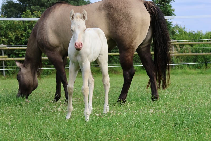 Foundation Quarter Horse Stutfohlen in seltener Traumfarbe! Sire: Shining C Amar Dam: Elly Blackburn 7 Panel n/n Ee aa DD CRCR SW1 - Smoky Cream Dun Splash (White Grullo) Manchmal steht einfach ein besonderes Fohlen auf der Weide und genau so eine kleine Schönheit ist Amari. Zum Verkauf steht ein außergewöhnlich typvolles Quarter Horse Stutfohlen in der seltenen Sonderfarbe Smoky Cream Dun Splash. Ein echter Hingucker mit Charme, Ausstrahlung und bestem Fundament! Amari vereint Korrektheit, Coolness und Genetik auf höchstem Niveau. Sie besticht durch ihr kräftiges Fundament, einen harmonischen Körperbau und ein ruhiges, menschenbezogenes Wesen. Ihre außergewöhnliche Farbgenetik macht sie nicht nur optisch zu einem Highlight, sondern auch zuchttechnisch besonders interessant. Sie liebt den Kontakt zum Menschen, lernt schnell und zeigt sich jetzt schon super cool und ausgeglichen. Sie erhält Papiere der AQHA sowie einen DQHA-Pass. Sie wächst artgerecht im Herdenverband auf, kennt das Fohlen-ABC beim Auszug und wird regelmäßig entwurmt, mit hochwertigen Mineralien versorgt und dem Hufschmied vorgestellt. Die letzten Bilder zeigen Ihre Eltern.