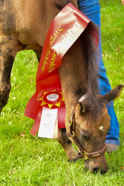 ausdrucksstarke, bildhübsche AQH Stute sucht ab Nov/Dez ihr 5 Sterne Zuhause. Josie ist am 01.05.2025 geboren und ein korrekt gebautes, leichtfüßiges, menschenbezogenes kleines Stütchen in der Traumfarbe Dark Buckskin. Sie wächst derzeit artgerecht in der gemischten Herde auf und ist bereits Halfter führig. Hufe geben, anbinden sowie verladen wurde auch schon fleißig geübt. Im Rahmen der DQHA Höveler Zuchtschau 2025 konnte sie bereits alle Blicke auf sich ziehen und ein sehr typvolles AQH präsentieren, was zum Gewinn der Sieger Trophy führte. Ihre Abstammung führt auf die alte Quarter Linie x Foundation /Reining zurück und verspricht später ein tolles Allround Talent. Beide Elterntiere können hier Vorort besichtig werden und sind 5 Panel, sowie 6 Panel N/N. Josie hat bereits ein schickes CORE und bekommt noch einen Pass von der DQHA. Für weitere Fragen stehe ich gern zur Verfügung.