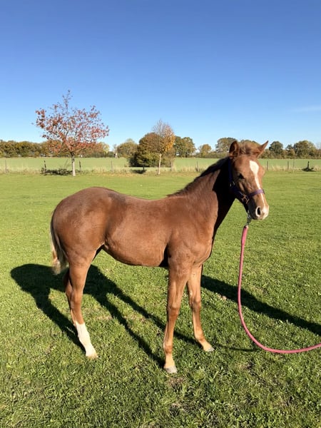 🩶 Bat Dragon’s Melody – ein wunderschönes QH-Stutfohlen sucht ihr Zuhause 🩶 Geboren am 08. Juni 2025 Unsere kleine Melody ist ein echtes Herzenspferd – wunderschön, sensibel und unglaublich gelehrig. Sie verzaubert mit ihrem liebevollen Wesen und ihrem aufmerksamen Blick, der zeigt, wie klug und fein sie ist. ⸻ 🐴 Charakter & Ausbildung Melody ist sehr menschenbezogen und verschmust. Sie liebt ihre vertrauten Menschen und zeigt ihnen täglich, wie viel Vertrauen und Zuneigung in ihr steckt. Bei neuen Menschen oder ungewohnten Situationen ist sie zunächst etwas zurückhaltend – sie schaut erst einmal genau hin. Doch gibt man ihr ein wenig Zeit, taut sie auf und zeigt, was in ihr steckt: Ruhe, Neugier und ganz viel Herz. 💞 Was sie gelernt hat, setzt sie zuverlässig um – sie merkt sich Abläufe schnell und möchte ihrem Menschen gefallen. Sie kennt das komplette Fohlen-ABC: lässt sich brav putzen, führen und anbinden, geht problemlos auf den Hänger und ist auch beim Schmied ein echtes Vorzeigepferd. Zweimal pro Woche arbeitet eine Trainerin mit ihr (u.a. Schrecktraining und Gelassenheit). ⸻ 🏡 Aufzucht & Haltung Melody wächst mit Familienanschluss direkt am Haus auf und lebt in einer gemischten Offenstallgruppe. Momentan läuft sie noch bei Fuß ihrer Mutter, kann aber in Absprache mit dem neuen Besitzer sanft und stressfrei abgesetzt werden. Wir haben viel Platz und große, gepflegte Koppeln, auf denen sie sich frei bewegen und gesund entwickeln kann. ⸻ 📜 Papiere & Gesundheit • AQHA-Papiere & DQHA-Equidenpass • Gentest über die Eltern: 6-Panel N/N ⸻ 📍 Standort: 23923 Schönberg (Mecklenburg) 💰 Preis: 12.000 € Auf den letzten Bildern sind Mutter und Vater (inklusive Papiere) zu sehen. Bei Fragen oder Interesse gerne jederzeit melden – wir freuen uns, Melodys neue Herzensmenschen kennenzulernen, die ihr die Zeit geben, die sie braucht, um Vertrauen zu fassen. 🤍