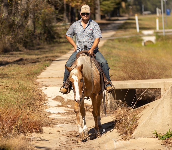 🎄𝐓𝐇𝐄 𝑯𝒐𝒍𝒊𝒅𝒂𝒚 𝐂𝐋𝐀𝐒𝐒𝐈𝐂🎄 Happening now thru MONDAY | DECEMBER 15th - Available EXCLUSIVELY on HorseBid's website! For more details and to register visit: www.Horsebid.com CONSIGNOR CONTACT: Flying B Equine, LLC 330-243-5233 LOCATION: Troy, TX BREED: AQHA REGISTERED: Yes REGISTERED NAME: Spot A Fire Water COLOR: Palomino HEIGHT: 14.2 AGE: 9 GENDER: Gelding Spot A Fire Water AKA “Fire” is a 2016 AQHA palomino gelding with the perfect amount of white, that stands 14.2HH. By a son of the great $6.6 Million dollar PE sire “SPOTS HOT”. Fire is a very well trained, versatile gelding that has packed all levels of riders here at our house! Fire is used in our lesson program for youth learning to ride and canter, and handles their inexperience with confidence! From the arena to the trails, he is the best and will boost his rider’s confidence! Fire goes anywhere you point the reins without hesitation, through water, over obstacles, and any type of terrain. You can jump on him and go enjoy an evening ride bareback and in a halter with no problems! He has absolutely no barn sourness, and walks back to our barn bridle less and in no rush! We have used Fire to move our cattle, and he loves watching a cow! He would be a great addition to someone wanting to play in the sorting / penning world. In the arena, this gelding to us is as smooth as butter! He has a soft trot and a rocking chair lope. Great transitions and easy cues, makes him so easy to enjoy. Our 3 year old little boy rides him around in the roundpen and arena by himself, surely you can too! He will also pivot on his haunches, side pass over logs, etc. He could easily go show in the Ranch classes! He would be perfect for a youth to bring up and show competitively! He has always been great with us, whether he had a month or a week off! Back at the barn, he is a barn favorite! He is the first to meet you at the gate, and is a great pasture mate! He stands for the farrier and picks up all 4 feet with ease! He has impeccable ground manners and will stand all day long for the kiddos to groom him! Our 3 year old loves to lead him around on his tricycle! He is very clean in his stall and has no weave or crib. Fire has never shown any negative behaviors in our program and has been a true joy to ride and own over the last several months! Fire is located with us in Troy, Texas. (Please notice our location change, as we have recently moved from Lufkin, to Troy, Tx) . Our pap We can help arrange shipping and buyers are welcome to try the horse in person as well. Fire is UTD on everything, we have PPE available, and you are welcome to do your own! All paperwork is in hand, and BOS will be signed within the exchange. You are more than welcome to review all of Fire’s information including PPE’s, numerous videos, records and more photos on our website! Flyingbequine.com/fire Please call Bailey with any questions! (330) 243-5233
