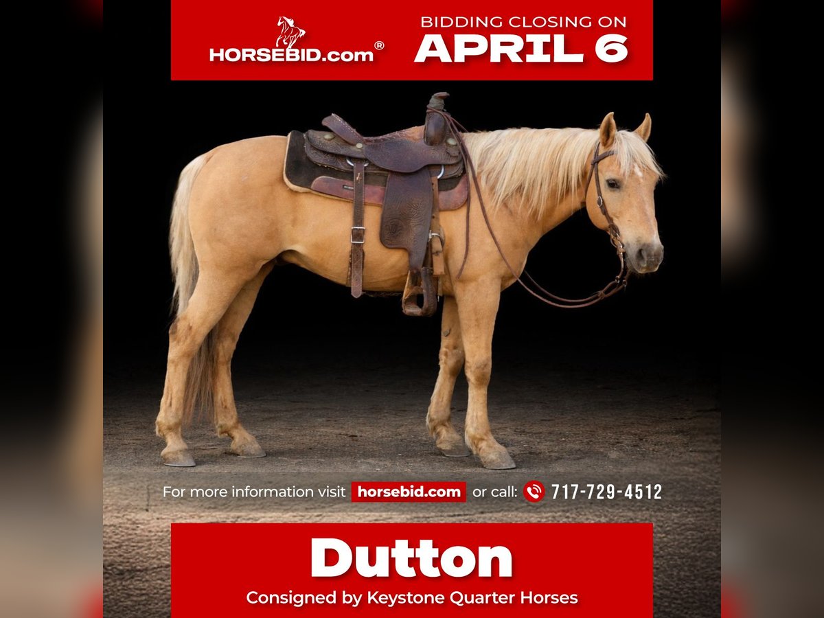 🌟𝑨𝒑𝒓𝒊𝒍 𝐀𝐋𝐋 𝐒𝐓𝐀𝐑 𝐋𝐈𝐍𝐄𝐔𝐏🌟 Happening now thru MONDAY | APRIL 6th - Available EXCLUSIVELY on HorseBid's website! For more details and to register visit: www.Horsebid.com CONSIGNOR CONTACT: Keystone Quarter Horses 717-729-4512 LOCATION: Mcconnellsburg, PA BREED: Quarter Horse REGISTERED: No REGISTERED NAME: Dutton *Family Safe* COLOR: Palomino HEIGHT: 14.2 AGE: 10 GENDER: Gelding Dutton is a 10-year-old palomino gelding standing a handy 14.2 hands tall, and he truly is the definition of a “unicorn” horse. With his golden coat and kind eye, he turns heads everywhere he goes—but it’s his gentle personality that really steals hearts. This sweet boy is as calm and well-minded as they come. Dutton is the kind of horse you can trust with your kids or enjoy yourself after a long day. He has absolutely no buck, bite, or kick—just a steady, willing attitude every time you swing a leg over. He’s patient, forgiving, and always aims to please, and he gives 110% in everything he does. Dutton has no spook and is a great horse to be around both in and out of the saddle. He’s been to town and has seen plenty of countryside, giving him the kind of experience that makes him a safe, reliable partner. He’s happy doing arena work, hitting the trails, or simply being your go-to confidence builder. Whether you’re looking for a dependable horse to babysit your kids this summer or a trustworthy mount to give lessons on, Dutton fits the bill perfectly. If you’ve been searching for that once-in-a-lifetime horse—the safe, gentle, and trustworthy kind that’s hard to find—Dutton is your guy. Horses like him don’t come around often. Please feel free to give Blake a call at 717-729-4512 for any questions !