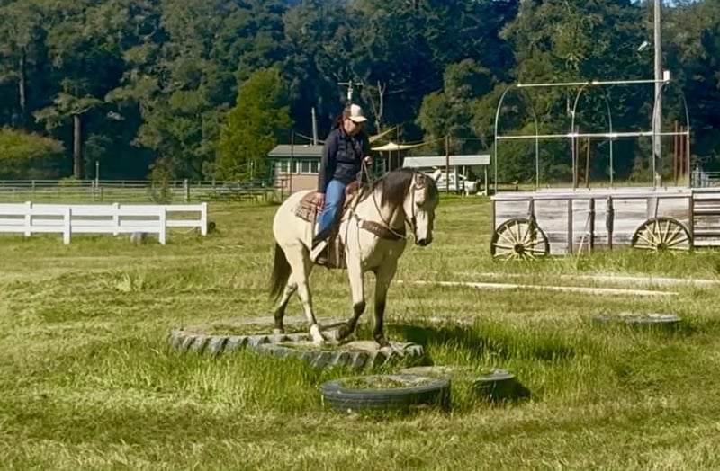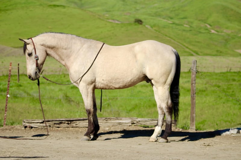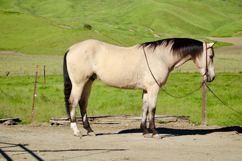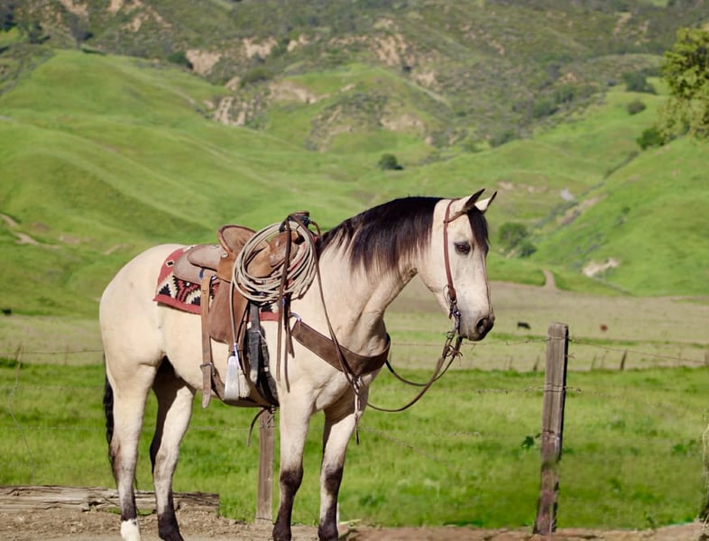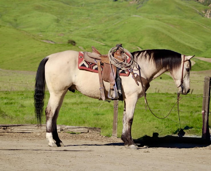 "AVAILABLE ON ONLINE HORSE AUCTION AT www DOT PlatinumEquineAuction DOT com BIDDING OPEN NOW thru SUNDAY | MARCH 29TH! *Final price will be determined on auction site* CONSIGNOR CONTACT INFO: Longhorn Ranch 831-537-1915 LOCATION: Paicines, CA CASHEW 10 Year-Old Buckskin Gelding • 15 Hands If you’ve been searching for a true all-around gelding that is gentle, dependable, and capable of doing just about anything, Cashew is the kind people look a long time to find. With his handsome buckskin color, kind eye, and steady mind, Cashew is the type of gelding that makes every ride enjoyable and dependable every time you saddle him. Cashew absolutely loves people and is as friendly as they come. He meets you at the gate with a soft eye and an eager attitude, always ready to go to work or spend time with you. His personality is pure puppy dog — affectionate, willing, and happy to be your partner. Under saddle, Cashew rides soft, low-headed, and collected. He has a smooth jog, an easy lope, and fluid transitions that make him comfortable and enjoyable to ride. He spins nicely, and when you say “whoa” and sit in your seat, he plants his hind end and stops. Cashew is also a solid ranch and rope horse. He has been used to gather cattle, brand, and handle everyday ranch chores. He ropes both the head and heel side, giving the same steady, dependable shot every time, making him a great horse to enjoy and build confidence on in the roping pen. He has been hauled extensively and has seen plenty of country. From mountain and forest trails to riding through town around cars, trucks, and everyday commotion, Cashew stays calm, steady, and confident wherever you take him. On the trail he is dependable and sure-footed. Bridges, tarps, flags, balls, streamers, and obstacles are no problem for him, and he would step right into ranch trail classes with confidence. Cashew has also been trusted to safely introduce beginner and novice riders to riding. His patient nature and steady mind make him a wonderful confidence-building partner, staying calm, forgiving, and dependable while helping riders feel comfortable and secure in the saddle. On the ground he is respectful and well-mannered. He stands quietly to saddle, is great for the farrier, easy to clip, and will practically put his own head in the halter when it’s time to go ride. Cashew rides out confidently alone or with friends and is the same dependable partner every time you swing a leg over. He is comfortable whether kept in a stall or turned out in pasture and settles easily into new environments. He hauls excellent, travels quietly, and goes down the road without fuss — a true gentleman from the barn to the trail. Cashew is the kind of gelding that is hard to replace — the type you can rope on, trail ride, use around the ranch, or simply enjoy every day. Horses with this kind of mind, kindness, and versatility don’t come along often. Paicines, California Call or Text Dina – Longhorn Ranch – 831-537-1915 Nationwide shipping available. We are happy to help arrange transportation anywhere in the U.S.