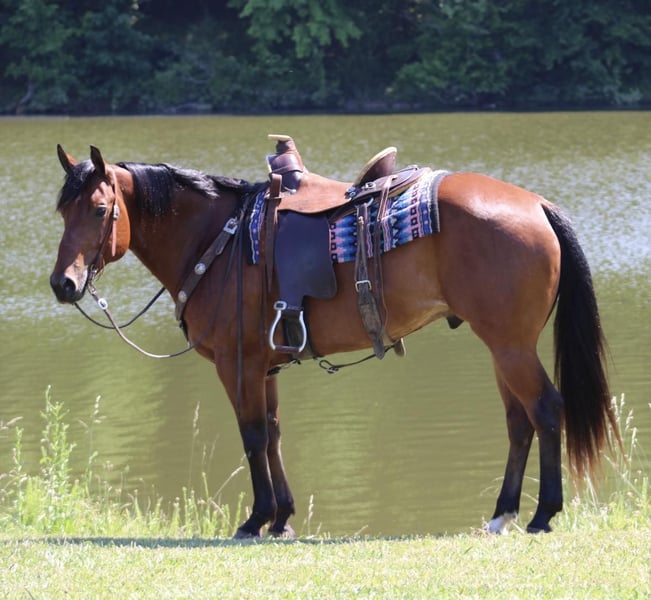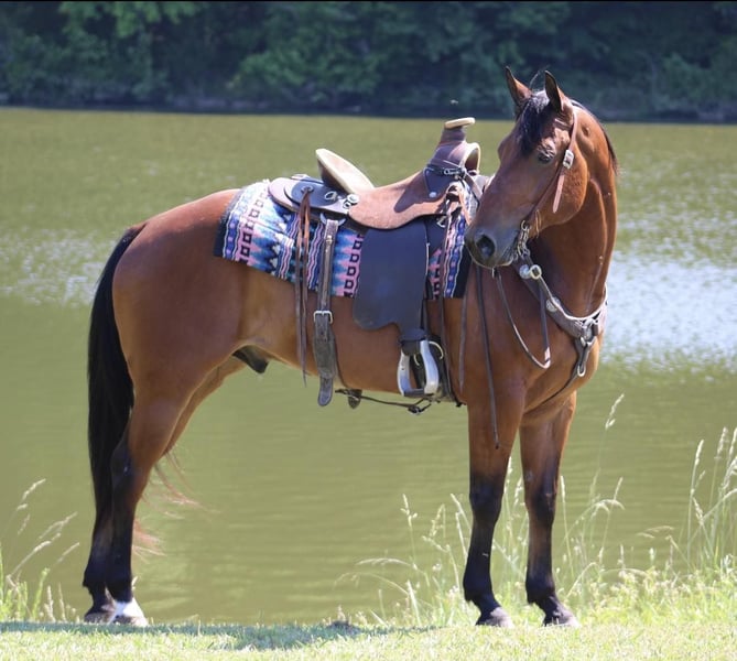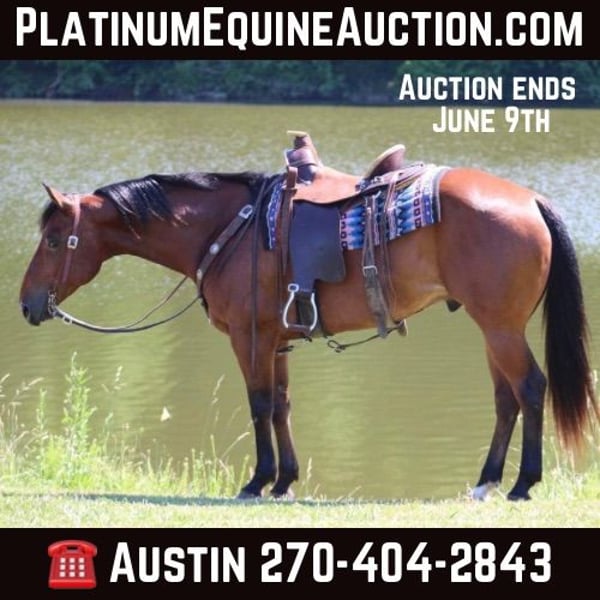ONLINE AUCTION Place your bids at www.PlatinumEquineAuction.com Starting Bid $3500 Auction ends June 9th, 2024 Need a new saddle? Check out White Rock Saddles on our website or Facebook! Watch Speedy Jess TJ… Jess is a 2016 Model AQHA Gelding that stands 15hh. Jess has been on many over-night camping trips; he will go anywhere he’s asked on a trail! Jess is a loving guy who will meet you at the gate! Jess leads loads and ties as he should without issues; he stands to mount and dismount as well as pick up his hooves without hesitation! Jess rides around softly and gently. This awesome gelding has all the shape and size, and he shines like a diamond! Jess walks along the trails with a loose rein; he will go up front or ride in the rear! Jess is not barn sour; he is 100% sound. Jess does not crib , weave or buck! Jess is an all-around family-type horse that won’t spin you off the seat and is ready to spend the summer with his new partner! Located in Tompkinsville, KY. Call AK Livestock Austin 270-404-2843. ONLINE AUCTION Place your bids at www.PlatinumEquineAuction.com Starting Bid $3500 Auction ends June 9th, 2024 Need a new saddle? Check out White Rock Saddles on our website or Facebook!
