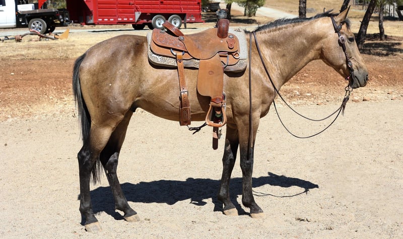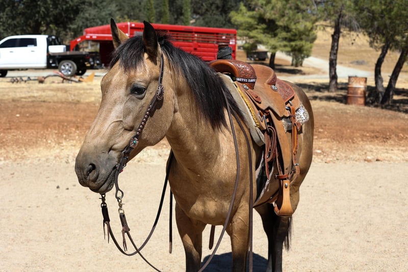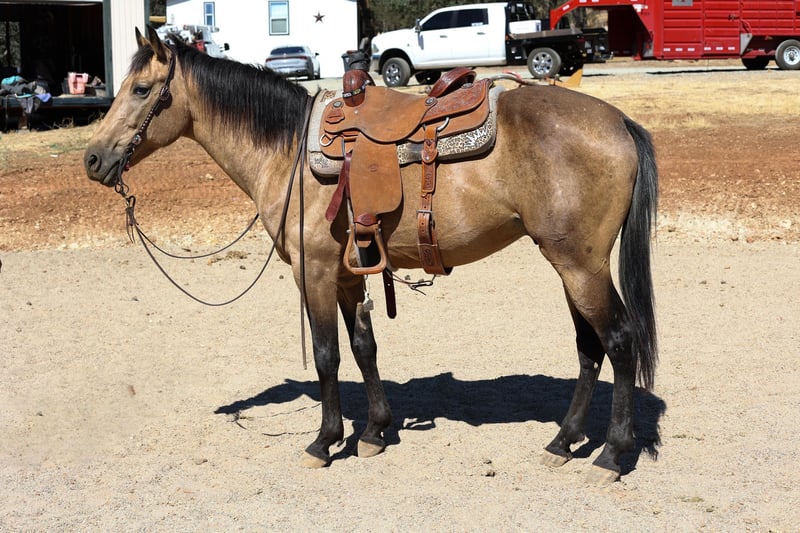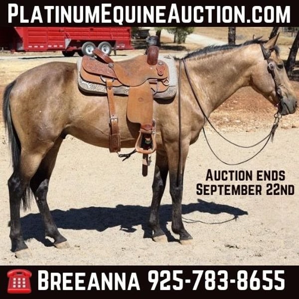 ONLINE AUCTION Place your bids at www.PlatinumEquineAuction.com Starting Bid $3500 Auction ends September 22nd, 2024 Need a new saddle? Check out White Rock Saddles on our website or Facebook! Bullseye: Your Dream Trail Horse Awaits! Meet Bullseye, yes if first thing coming to mind is toy story this is the human version of Woody’s trusty steed. This 8-year-old grade gelding is the ultimate furry companion and personality will make him your barn favorite. Standing at approximately 15.1 hands (will measure to confirm), Bullseye boasts a stunning golden coat and soft, gentle eyes that will melt your heart. He’s as reliable as they come – a true partner for any adventure. Bullseye is a joy to ride, with a fluid gait and smooth transitions. He excels on challenging terrain, having navigated steep, rugged trails with ease. He’s desensitized to a variety of obstacles, including tarps, logs, and bridges, and remains calm when faced with unexpected sights and sounds. Whether you’re riding through town or exploring the wilderness, Bullseye is your rock. Previous owner was messing around on the heel side with him. He has had guns shot off of him. This charming gelding has a bit more of a forward pace, he has a nice stop and turn, if you can get up on him you should have no issues riding him! He collects elegantly and moves with grace. Bullseye is a breeze to handle, standing quietly for saddling, bridling, and bathing. He’s an expert traveler, hauling like a seasoned pro. What truly sets Bullseye apart is his kind, affectionate nature. He adores attention and thrives on companionship, making him the perfect partner for a rider seeking a long-term bond. He has no mean streak whatsoever – just a genuine desire to please and connect with his human. The horses in our care are extensively trailered and exposed to a variety of environments to ensure their confidence and calm demeanor in new situations. Bullseye is ready for his next great adventure – could it be with you? Key Features: * 8-year-old grade gelding * Reliable and trustworthy – a true trail horse * Comfortable barefoot or shod * Experienced with rugged terrain, town riding, and loud noises * Smooth gaits, excellent stop and turns * Easy to handle for all horse care tasks * Rides bareback, collects with elegance * Hauled extensively to new locations * Seeking a rider for a partnership Please feel free to reach out to me with any questions you might have. Contact Cross B Horses Breeanna 925-783-8655 Located in Valley Springs, CA. ONLINE AUCTION Place your bids at www.PlatinumEquineAuction.com Starting Bid $3500 Auction ends September 22nd, 2024 Need a new saddle? Check out White Rock Saddles on our website or Facebook!