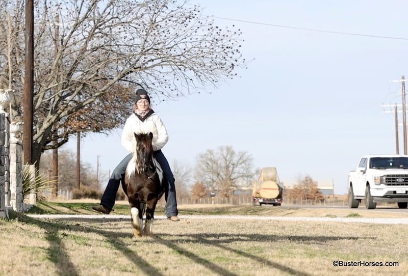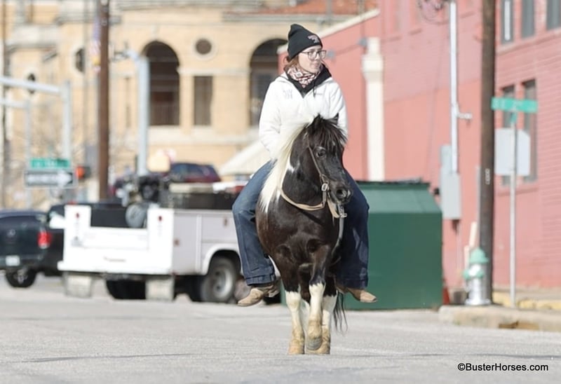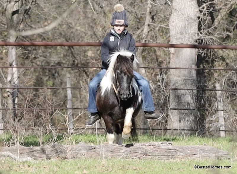 ONLINE AUCTION Place your bids at www.PlatinumEquineAuction.com Starting Bid $3500 Auction ends March 9th, 2025 Need a new saddle? Check out White Rock Saddles on our website or Facebook! Orca is the most peaceful, gentle, and the STOUT-EST little 11 hand pony that you can find! He is literally about as wide as he is tall! Whether you are only 1 …or you are 91, you can enjoy this pony! Heis plenty big and thick made enough for the bigger kids and the smaller adults to hop on and enjoy a ride. He will peacefully walk absolutely all day long, on a big loose drapey rain and he guides anywhere that you want to go easily. He is in no hurry to go anywhere and is suitable for any level of little rider. We got this special pony directly from the Amish family who raised him, and he raised an entire herd of their little kiddos. Because of his naturally laid-back and in no hurry to go anywhere demeanor, he was the very first one that the little bitties rode. He is only 10 years old and could be able to be in your family for a couple of sets of little ones, while still being incredibly seasoned for his young age! He is an exceptionally easy keeper – he will cost less to feed than most of your family dogs do! He adores babies and little tiny kids and enjoys lots of loving, brushing, and attention! He will peacefully stand with his head down and just take a nap – if that’s what the situation calls for! He is exceptionally good riding down the side of the highway and riding into town around and in traffic. He hops right on the trailer like a seasoned old gentleman, and he is extremely easy to saddle, bridle, and will stand next to anything quietly while you climb on! He happily crosses water, and will ride anywhere you want him to in a group of horses, or he is also extremely comfortable and quiet and relaxed riding out all alone. Zero issues worrying about the barn or leaving his buddies. He is super cozy and easy to ride bareback, we have thrown a halter on him and swung up on him many times. Most all of the time the kids just grab him and ride bareback because he is so wide and cozy to sit on! He is great with time off and one of those rare ponies that you can leave out for 2 months and just go grab and use him and he’s the same pony. He is one of the special ones that stays relaxed, civilized, and broke – and doesn’t turn into a silly boy if you leave him turned out for a while. Please feel free to call us anytime if you have any questions about Orca, Buster Horses Ashley 214-605-7174 Orca is barefoot and has excellent feet, his teeth were just done by our equine dentist last month, his feet were just trimmed this week, and he also was dewormed at that time. He is in great shape, definitely a whole lot on the fat side (his side blubber is where he got his name!) He is an easy keeper and in good health. Watch his video, and to see additional videos, go to our website: BusterHorses.com or our Facebook page Buster Horses. ONLINE AUCTION Place your bids at www.PlatinumEquineAuction.com Starting Bid $3500 Auction ends March 9th, 2025 Need a new saddle? Check out White Rock Saddles on our website or Facebook!