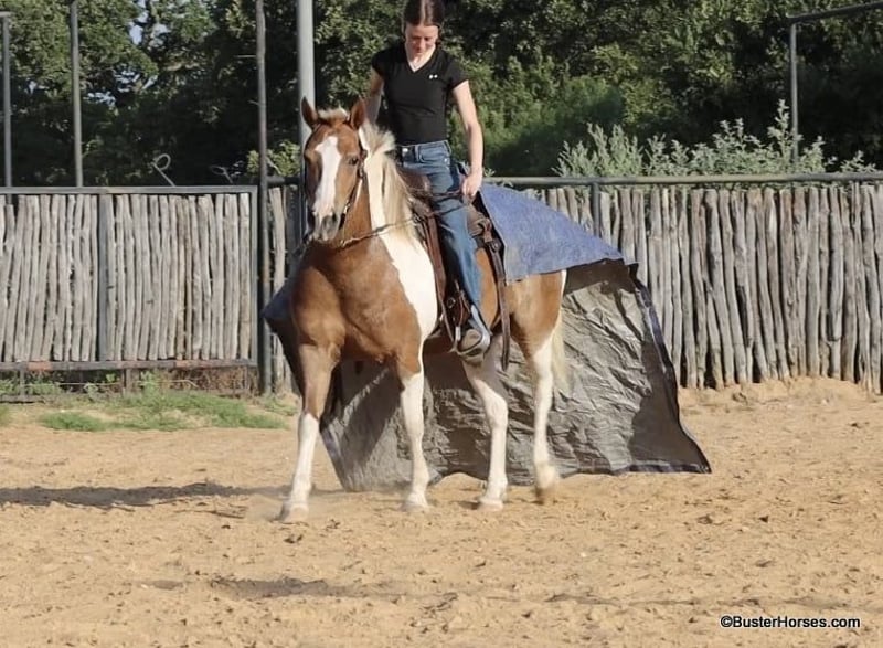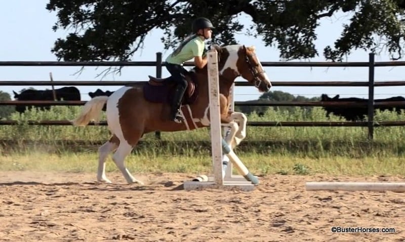 ONLINE AUCTION Place your bids at www.PlatinumEquineAuction.com Starting Bid $3500 Auction ends August 4th, 2024 Need a new saddle? Check out White Rock Saddles on our website or Facebook! “Frank the Tank” – 12.2H, 9 year old grade sorrel paint haflinger cross gelding Frank the Tank is a super fun gelding that is the perfect height. He is so easy to get on and off of, at only 12.2 hands – but he is as stout as they make them and has tons of foot and bone and can easily carry an adult rider. Watch his videos – he easily fills out the leg of our adult riders, but he is an incredibly easy to handle and convenient shorter height. If you are looking for a fun height for your kids, that they won’t outgrow overnight, then this is your guy – or if you are looking for a smaller horse for an adult rider that is easy to saddle and easy to get on and off of. Frank has been a million miles out on the trails and loves to go to town and is very comfortable around traffic and commotion. He rides out just as well alone as he does in a group. Frank was driven by a previous owner when he was younger, but his past family just used him for pleasure riding. He rides both English and western and has been to handful of local events. He would be a great mount for pony club and entry level hunter/jumper/dressage shows, he has been started over fences and loves to jump! He could also be fun for the low level playdays. By far his largest attribute is his fun, sweet, friendly disposition, big personality, and willingness to try anything that you put in front of him! Please check back for more videos of Frank to be posted this coming week at BusterHorses.com Frank was just trimmed last week and his teeth were also done by an equine dentist last week. At the same time he had his sheath cleaned, his ears preemptively treated for ticks, and he was also power packed wormed. Frank is also good to shoe, but he has great feet and goes really well barefoot – if his new owner prefers him to be shod, we can have him shod prior to him heading to his new home. He will arrive at his new home up-to-date and ready to go to work! To see additional videos, go to our website: BusterHorses dot com or our Facebook page Buster Horses Please call anytime for more information at 214-605-7174 Frank is located in Weatherford, TX – one hour from Dallas / Fort Worth International Airport. He is an easy day trip or fun overnight trip to come try out, from anywhere! We are experienced, knowledgeable sellers, and we can help with quickly arranging affordable shipping to any buyer’s location – we have experience shipping worldwide – including regularly to Hawaii, Canada, Mexico, Europe, and South Africa. ONLINE AUCTION Place your bids at www.PlatinumEquineAuction.com Starting Bid $3500 Auction ends August 4th, 2024 Need a new saddle? Check out White Rock Saddles on our website or Facebook!