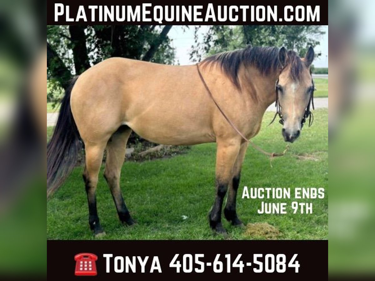 ONLINE AUCTION Place your bids at www.PlatinumEquineAuction.com Starting Bid $3500 Auction ends June 9th, 2024 Need a new saddle? Check out White Rock Saddles on our website or Facebook! Meet DUNZEE! 2015 REGISTERED APHA BUCKSKIN MARE. Let’s get the facts to you FIRST! Dunzee stands between 14.1-14.2HH. She is the great grand daughter of AQHA Hall of Fame Stallion AND $6 MILLION DOLLAR NRHA SIRE: HOLLYWOOD DUN IT! This girl has talent running thru her veins!! She has taken to the roping pen on the heel side like a true competitor!! She is the most eager to learn and so accepting!! She is MAINTENANCE FREE!! No known soundness issues since we have owned her the past 4 years. She has great feet- has been barefoot and shod. No weave, cribbing, bite, kick,cold back or cinchy! She’s your pal always! She does great in a stall or in a herd. No supplements required or needed- we prefer Zesterra liquid while traveling or lick tub when weather changes- Easy keeper! Takes correct leads, easy to correct, big stopper! She is eager to go rope! She will go wherever you point her and LOVES an all day trail ride as well! Crosses water, large downed trees, easy to navigate anywhere! This pretty gal is ready for her new best pal! Don’t miss an opportunity to own her and raise babies later- she’s had 1 foal (3 yrs ago) stud colt and was a super amazing mama!! Don’t pass her up! Located near Perry OK- Contact Tonya at Branded A Equine with any questions @ 405-614-5084. ONLINE AUCTION Place your bids at www.PlatinumEquineAuction.com Starting Bid $3500 Auction ends June 9th, 2024 Need a new saddle? Check out White Rock Saddles on our website or Facebook!
