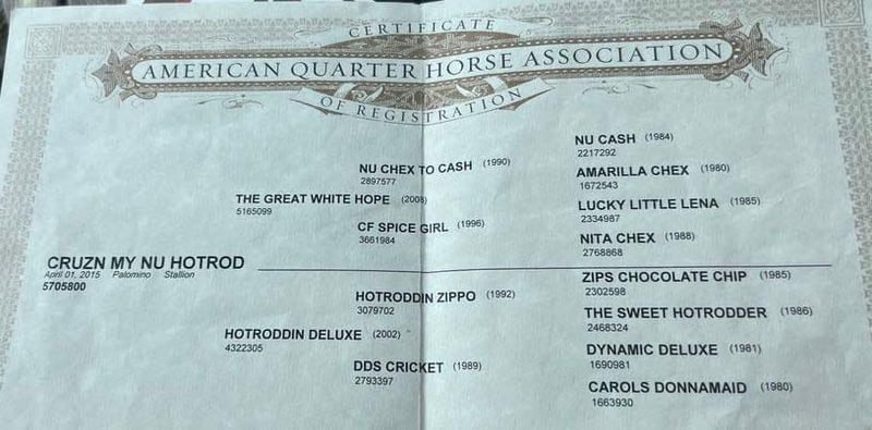 ONLINE AUCTION Place your bids at www.PlatinumEquineAuction.com Starting Bid $3500 Auction ends March 2nd, 2025 Need a new saddle? Check out White Rock Saddles on our website or Facebook! Meet Cruzn My Nu Hotrod, the palomino gelding that’s turning heads at our ranch! This guy is not just any horse; he’s a dual-registered superstar with APHA and AQHA, born in 2015 and standing at a solid 14.3 hands. Hotrod has that perfect look and build that every horse lover dreams of. Sired by The Great White Hope, who boasts lineage to the NRHA two-million-dollar sire Nu Chex To Cash, and with the legendary Zipps Chocolate Chip in his pedigree, he’s got some serious credentials! Hotrod was trained by a reining expert, and trust me, he knows how to move with style. From ranch riding to trail classes, he’s done it all and does it with flair. His resume is impressive—think classy spins, stunning sliding stops, and smooth circles. No quirks here; he’s the barn favorite for a reason! Plus, his ground manners are top-notch—clipping, brushing, shoeing, saddling, and bathing are all a breeze with him. Throw any obstacle his way, and he’ll tackle it with grace, whether it’s teetering bridges or trotting over poles. This guy is not just a pretty face; he’s also a fantastic ranch worker, eager to gather cattle and tackle any task you throw at him. Hotrod is great on trails, handling logs and rocky paths like a pro. He’s even started heeling and shows promise as a rope horse. With experience in busy parks and on beaches, he’s unfazed by trains, tourists, or joggers. Perfect for families and novice riders, he’s the definition of safe and reliable. Hotrod is always ready to greet you at the gate, making him the go-to horse for everyone. If you’re looking for a top-notch ranch horse or a classy show contender, give us a shout at Longhorn Ranch! Dina at 831-537-1915, located in beautiful Paicines, CA, would love to introduce you to this phenomenal gelding! ONLINE AUCTION Place your bids at www.PlatinumEquineAuction.com Starting Bid $3500 Auction ends March 2nd, 2025 Need a new saddle? Check out White Rock Saddles on our website or Facebook!