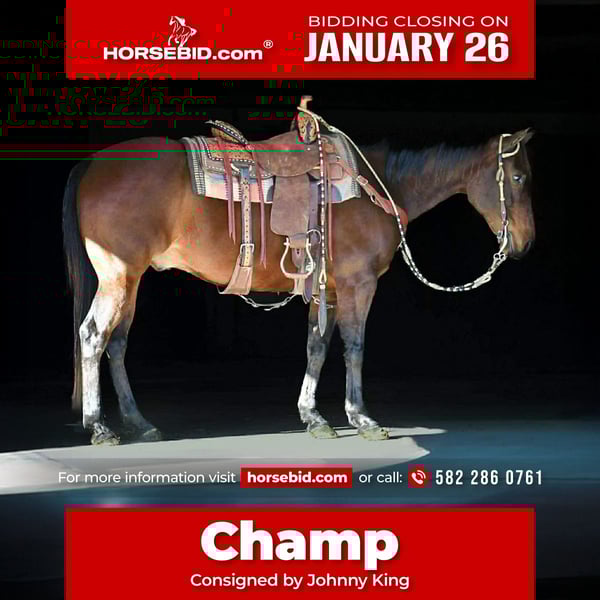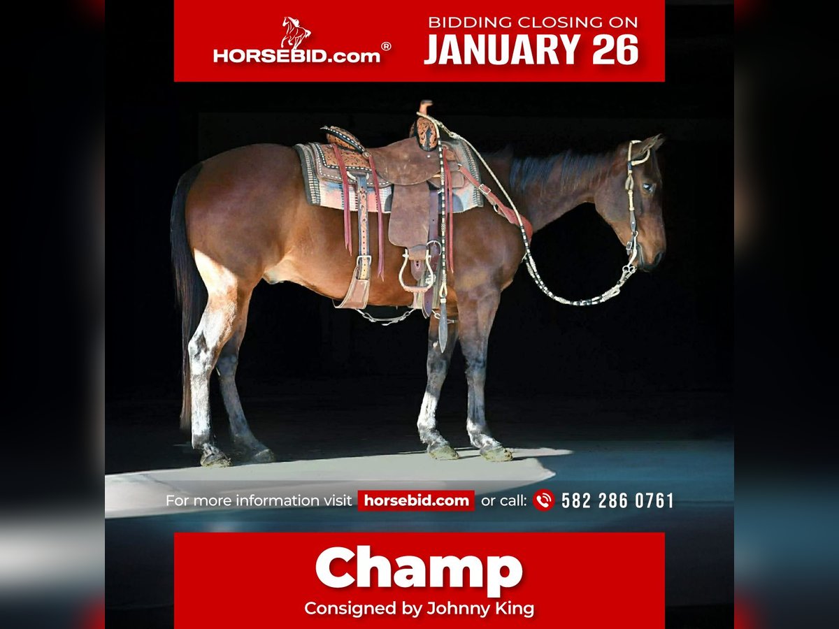 𝐉𝐀𝐍𝐔𝐀𝐑𝐘 ⭐️𝑨𝒍𝒍 𝑺𝒕𝒂𝒓 𝑳𝒊𝒏𝒆𝒖𝒑⭐️ Happening now thru MONDAY | JANUARY 26th - Available EXCLUSIVELY on HorseBid's website! For more details and to register visit: www.Horsebid.com CONSIGNOR CONTACT: Johnny King 582 286 0761 LOCATION: Rebersburg, PA BREED: Quarter horse REGISTERED: Yes REGISTERED NAME: Blackburn Broken Bo COLOR: Bay HEIGHT: 14.3 AGE: 11 GENDER: Gelding Blackburn Broken Bo AKA Champ is an 11yr old 14.3 hand bay AQHA gelding. He is well broke to ride, neckreins, sidepasses and is soft in the bridle. We have used Champ to push cattle and check fences and have taken him on miles of trails. He goes over logs and through water and wherever you point him. We have taken him down the main highway into town and he does not mind the traffic. Champ rides english and western and also takes a small jump. He has asmooth walk trot and canter. He rides well in the arena and he is also a seasoned trail horse. Champ does well inside or turned out in a mixed herd . He loads and unloads, he stands to be tacked, mounted, washed and for the farrier. Champ is very easy to get along with, he is quiet in the barn and loves attention. He sells sane and safe, and comes with a clean ppe and xrays on file. For more information or to come meet him call or text Johnny at 582 286 0761 We can help arrange shipping anywhere!!