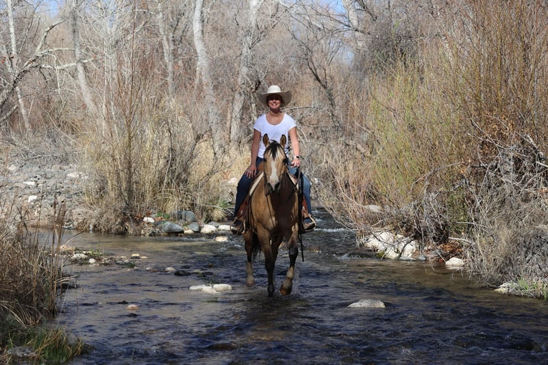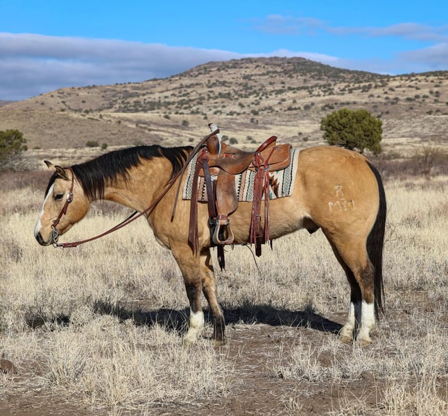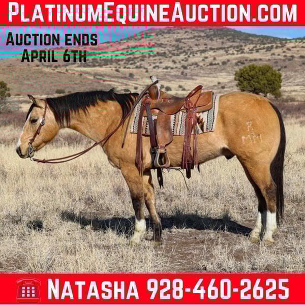 ONLINE AUCTION Place your bids at www.PlatinumEquineAuction.com Starting Bid $3500 Auction ends April 6th, 2025 Need a new saddle? Check out White Rock Saddles on our website or Facebook! Leroy is a sweet, fun young gelding with his whole life in front of him. He is well built, stands 15H and is 4 years old. He is a total dork and pet – and he is so much fun to be around. He has a very endearing, playful personality – and he loves to be messed with and have a job. He is very bold and curious, he is going to make a very confident solid trail riding companion. He does great outside, is always willing to go into new situations and try anything you point him at. He loves going places, and gets super excited about the water! He is great to catch, is that annoying horse that always comes over to see what you’re doing and wants to be in the middle of it. He will just stand there by you, just for maybe getting some attention. If you have tools, or a cap, or a brush laying around – he may grab them and run off with them. He loves water and when you bathe him he always tries to grab the water hose and put it in his mouth. He is easy to groom, saddle, bridle, and is always quiet to step on – even if he’s been left off for a couple weeks. He catches both leads willingly and evenly, and has a nice naturally balanced trot and lope, he will walk around on a relaxed rein, and he has a nice stop, and already trots and lopes nice circles each direction. This guy has a solid foundation for someone to take on from here and finish any way they like for a particular job, or just enjoy him as he is, as a fun pleasure and trail riding horse. Leroy hops right on the trailer, he stands quietly – and he is just as confident about riding out alone as he is riding out in a group. He just dropped his flat winter hair …and he is absolutely stunning gold color and so shiny now. We are going to try to do some even more recent pictures and videos because he’s completely changed color just in the last few days – and he is even more shiny and gorgeous now! Everyone that pulls in the driveway notices him. Please give us a call if you would like to come see him and meet him, he is definitely one of those horses that you’ll like even more in person, he has a very cool personality. Leroy just wears front shoes, and his feet were just reset last week – he was barefoot this past year, he has really great feet and could easily go barefoot again. His teeth were just done by our equine dentist last month, and he also had his sheath cleaned, his ears preemptively treated for ticks, and was dewormed at that time. He is in great shape and in good health. Watch his video, and to see additional videos, go to our website: BusterHorses.com or our Facebook page Buster Horses or call Ashley with Buster Horses 214-605-7174 for more info. Leroy is located in Weatherford, TX – one hour from Dallas / Fort Worth International Airport. He is an easy day trip, or fun overnight trip to come and try out, from anywhere! We are experienced, knowledgeable sellers, and we can help with quickly arranging affordable shipping to any buyer’s location – we have experience shipping worldwide – including regularly to Hawaii, Canada, Mexico, Europe, and South Africa. Check our website for buyer reviews, more videos of Leroy, additional info, etc: BusterHorses.com/Leroy ONLINE AUCTION Place your bids at www.PlatinumEquineAuction.com Starting Bid $3500 Auction ends April 6th, 2025 Need a new saddle? Check out White Rock Saddles on our website or Facebook!
