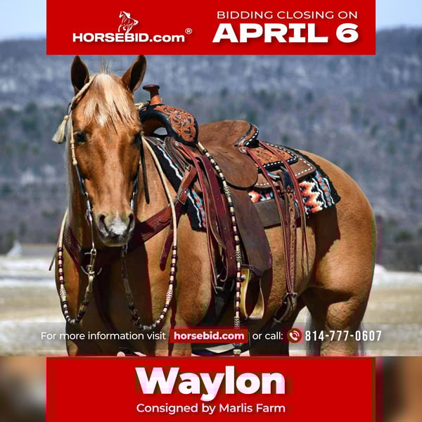 🌟𝑨𝒑𝒓𝒊𝒍 𝐀𝐋𝐋 𝐒𝐓𝐀𝐑 𝐋𝐈𝐍𝐄𝐔𝐏🌟 Happening now thru MONDAY | APRIL 6th - Available EXCLUSIVELY on HorseBid's website! For more details and to register visit: www.Horsebid.com CONSIGNOR CONTACT: Marlis Farm 814-777-0607 LOCATION: Rebersburg, PA BREED: Quarter horse REGISTERED: No COLOR: Palomino HEIGHT: 15 AGE: 11 GENDER: Gelding ✨ Waylon – 11 Year Old Palomino Quarter Horse Gelding ✨ Waylon is an exceptional 11-year-old, 15 hand palomino Quarter Horse gelding that checks all the boxes for a dependable, versatile partner. This handsome gelding is well broke to ride, neck reins, and is very handy broke, making him suitable for a wide range of riders. Waylon has been successfully shown in 4-H and has also been hauled to rodeo events, giving him the kind of real-world experience that makes him solid and reliable. He is a great trail horse, rides out quietly, and is traffic safe, handling new environments with confidence and ease. Not only is Waylon talented and experienced, but he is also gentle, sound, and eye-catching with his beautiful palomino color. He is the kind of gelding that can go from the arena to the trails and fit right in! 📞 For more information or to come meet Waylon, call Mark 814-777-0607 (call only). 🚚 We can help arrange shipping anywhere.
