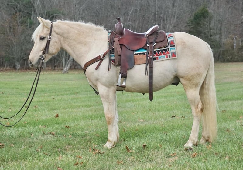 ONLINE AUCTION Place your bids at www.PlatinumEquineAuction.com Starting Bid $3500 Auction ends December 29th, 2024 Need a new saddle? Check out White Rock Saddles on our website or Facebook! Check out Phoenix! A 9 YEAR OLD PALOMINO CROSSBRED GELDING! This gelding stands around 15 hands tall and is wide as he is tall! This gelding has been a pleasure to have around! We have trail rode him all over he will cross the creeks and logs and has been to over night camping trips! Phoenix will take both leads and has been rode english and western! He will lead the trail ride or follow right along! He will stand for you to get on and off! He will run right up to you in the pasture and wants to be your Freind! He will pick up all four feet, loads, clips, bathes! We have used Phoenix to check cattle and check fence and he loves his job! This gelding is ready to point in any direction and is ready for his new loving family! He truly is a gentlemen and a joy too be around! Buy with confidence! Located in Rineyville Kentucky! Call Izaiah Ryan For More Information 270-505-9512. ONLINE AUCTION Place your bids at www.PlatinumEquineAuction.com Starting Bid $3500 Auction ends December 29th, 2024 Need a new saddle? Check out White Rock Saddles on our website or Facebook!