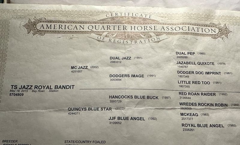Besuchen Sie unsere Website für mehr Bilder und ein Video. AHAMC ist seit 2005 in der Pferdebranche tätig und verkauft Pferde über das Internet. Wir haben eine lange Erfolgsbilanz mit hunderten von zufriedenen Kunden. Wir arbeiten hart, um Reiter mit den richtigen Pferden zusammenzubringen und spezialisieren uns auf anfängerfreundliche, familienfreundliche Pferde, die von unserer Familie benutzt und überprüft worden sind! Jazz Royal Bandit ist ein gut gebauter roan Wallach mit einem Gewicht von ca. 15h. Er ist ein 2015er Modell und ist in der AQHA mit einem guten Stammbaum registriert. Jazz wurde auf der Ranch zum Sortieren und Einpferchen von Vieh eingesetzt. Er weiß, wie man auf der Ranch arbeitet, aber sein Verstand ist eher auf Freizeit eingestellt! Jazz liebt es, langsam und entspannt über die Pfade zu gleiten, und er ist ein Pferd, das die ganze Familie reiten und genießen kann! Er ist ein ausgezeichnetes Trailpferd und wurde schon in mehreren Staaten geritten. Er überquert Bäche, Gräben, Baumstämme und navigiert durch raue, felsige Gebiete. Er ist sicher im Straßenverkehr unterwegs. Er hat einen geschmeidigen Jog, einen sehr geschmeidigen langsamen versammelten Lope, kann gut anhalten, dreht einen Kreis in beide Richtungen und geht mit Leichtigkeit rückwärts! Jazz ist ein selbstbewusstes Pferd auf den Trails und wird die Mannschaft anführen, ohne Probleme alleine ausreiten! Er ist mit allen Arten von Wildtieren wie Rehen, Truthähnen oder anderen Tieren wie Kühen oder Hunden in Berührung gekommen und geht überall hin, wo man ihn hinschickt. Er ist viele Meilen in den Bergen von Ost-Kentucky geritten und hat jedes mögliche Hindernis auf dem Weg überwunden. Er geht selbst die steilsten Hänge hinauf oder hinunter, durchquert tiefe Bäche, überquert umgestürzte Bäume und überwindet alle Arten von unwegsamem Gelände und ist dabei immer noch trittsicher. Jazz ist nicht zimperlich, hat keinen kalten Rücken, kratzt nicht und webt nicht. Jazz ist ein Pferd, auf das jeder stolz sein kann und das jeder lieben wird!!! Bei Fragen können Sie sich gerne an Eric 606-308-2461 wenden.