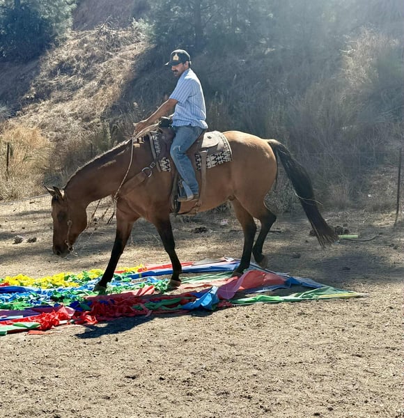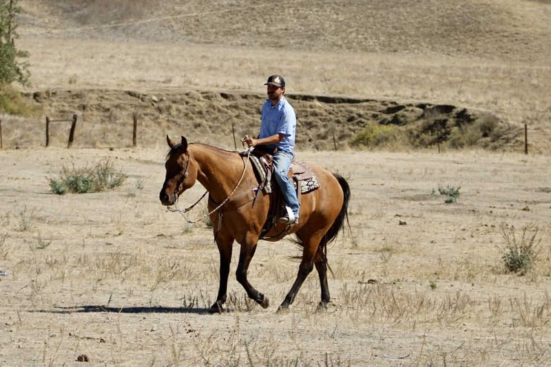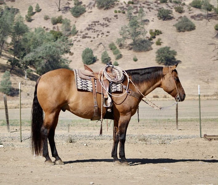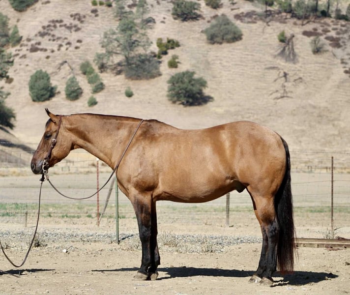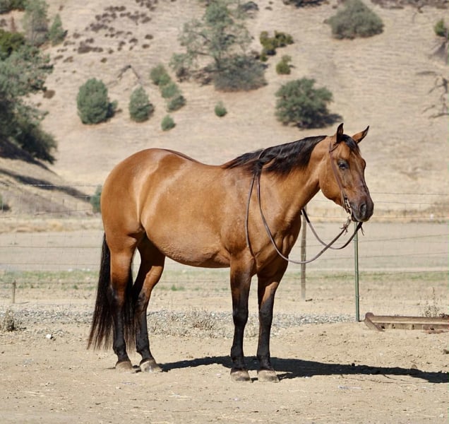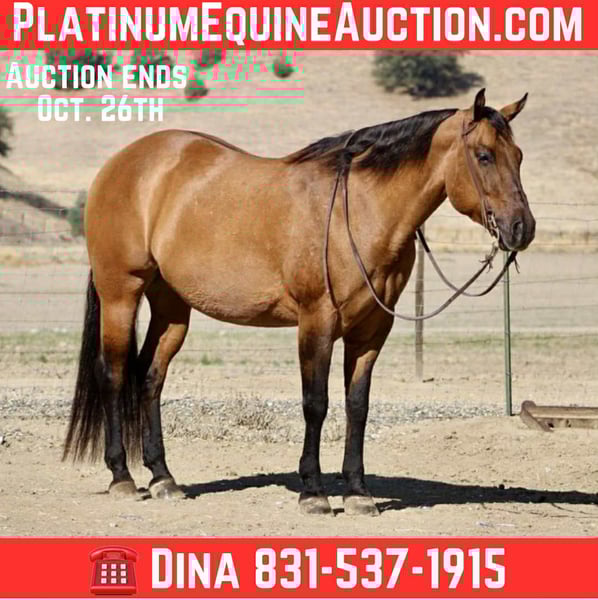 ONLINE AUCTION Place your bids at www.PlatinumEquineAuction.com Starting Bid $3500 Auction ends October 26th, 2025 Need a new saddle? Check out White Rock Saddles on our website or Facebook KGS Latigo Dun Skip – Where Style Meets Substance If you like them big, broke, and downright beautiful, here’s the one that turns heads everywhere he goes. KGS Latigo Dun Skip is a 2015 AQHA buckskin/dun gelding standing a true 16 hands, and he’s every bit as impressive in person as he looks on paper. This is that rare, picture-perfect, puppy-dog-gentle gelding that rides like a pro yet stays quiet and kind enough for absolutely anyone. Latigo is exceptionally broke — he’ll side-pass over poles, back through an L, spin, pivot, stop, and change leads so smooth it looks rehearsed. He’s earned AQHA points in Ranch Trail and Ranch Versatility, and his handle is everything you’d hope for: soft, responsive, and stylish. If you’re after the easy-going kind with buttons to show off, this is your boy. He’s the definition of seasoned. Latigo has been branded off of, gathered cattle, and put in real ranch work with the same calm, can-do attitude he brings to the show pen. Out on the trail he’s absolutely solid — he’s gone up narrow mountain passes, through brush, logs, creeks, bridges, and steep country, and across every obstacle imaginable: flags, tarps, bouncy balls, tires, and flying plastic — and never so much as flicks an ear. Traffic, dogs, wildlife — nothing fazes him. He’s easy in every way. Stands quiet for the farrier and vet, tacks up easy, hauls anywhere, and genuinely loves people. Ride him every day or once a month — he’ll saddle up the same. Latigo is that rare, steady-minded, kind-hearted gelding that makes you feel safe, look good, and have fun all at once. His pedigree backs it all up: by Dun It OK (son of Definitely A Dunit by the legendary Hollywood Dun It) and out of Skip The Silk, tracing to Genuine Bee Skip and Tuff Tazz. He’s AQHA DNA-verified and 5-panel N/N, combining reining style, cow sense, and rock-solid foundation breeding into one flawless package. From branding pens to show pens, trails to traffic, Latigo does it all — and looks good doing it. Handsome, handy, and honest through and through. Safe for the whole family to enjoy!!! Located in Paicines, California. Contact Dina with Longhorn Ranch 831-537-1915. ONLINE AUCTION Place your bids at www.PlatinumEquineAuction.com Starting Bid $3500 Auction ends October 26th, 2025 Need a new saddle? Check out White Rock Saddles on our website or Facebook