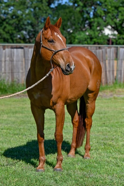 "AVAILABLE ON ONLINE HORSE AUCTION AT www DOT MagicHorseAuction DOT com BIDDING OPEN NOW thru TUESDAY | September 16TH! - BUY IT NOW AVAILABLE! *Final price will be determined on auction site* CONSIGNOR CONTACT INFO: 7FR Ranch - Molly Falconer 651-271-0237 LOCATION: Normangee, TX Lincoln is ready to take the next step in his performance career. He has been lightly hauled to exhibition and is ready to keep going with. He is a maternal brother BBR World Champion and NFR Qualifier, Sixappeal ridden by Molly Otto. Wave Carver x Six It Up (x Tres Seis) Lincoln was lightly raced as a three year old (SI 87) and lacks no speed. He has a big, smooth stride and and excels with having a job. Had been exposed to cattle, shagging and bringing the steers back up from the stripping chute. He is bred to be a performance horse with speed and is more on the sensitive and would be best suited for a confident but kind rider. If you continue to build his confidence and show him respect, he will work hard for you and make you a winner. Lincoln spent six months with a professional barrel racing trainer who hauled him and put a perfect pattern on him. He is patterned correctly and ready to go out and win. Lincoln is an exceptionally bred gelding with proven winners on the race track and barrel pen in his pedigree. He’s had the foundation put on him and is ready to keep advancing in the performance pen. Don't miss the opportunity to own a gelding with the looks, talent, and temperament to be your next champion. Lincoln is ready to continue his winning ways with you. He bathes, stands for the farrier, hauls well and is always excited to meet you at the gate. Lincoln has a big heart and is eager to please. Throw him on the trailer and have fun. Please contact Molly Falconer for any additional questions. (651)-271-0237