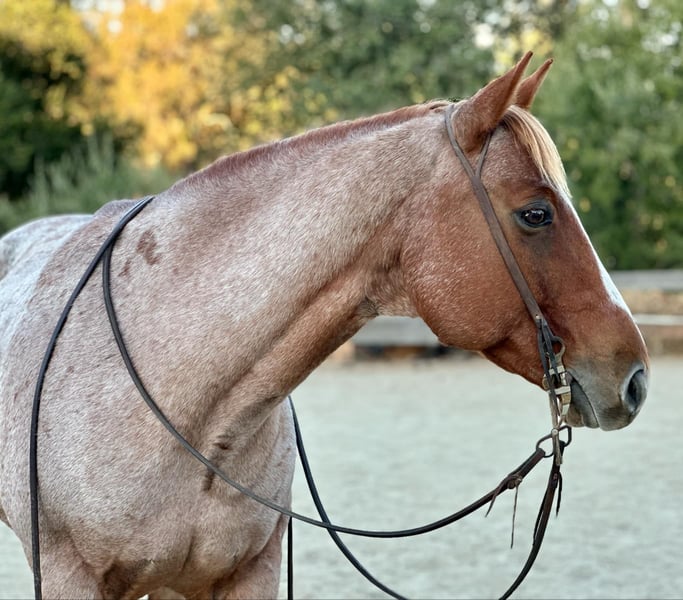 ONLINE AUCTION Place your bids at www.PlatinumEquineAuction.com Starting Bid $3500 Auction ends October 20th, 2024 Need a new saddle? Check out White Rock Saddles on our website or Facebook! Raisin is a grade 10 year old red roan gelding standing firmly at 15HH. if you’re looking for a family favorite, safe for everyone gelding with a super fun feel to him, Raisin is your guy! Raisin has been rode in downtown parades, all over the trails, beaches and country side. He is a true point and go type horse with zero refusal or bocks. He always has a good even pace and will keep up with the pack, or venture off alone. I cannot express how safe and reliable Raisin is. Throw a true beginner or a more advanced rider and they will both enjoy him just as much. As well as being safe, he is also super handy broke. Raisin was professionally started so he has a good one hand turn around, flying lead changes, and a nice stop, and my favorite button is his reverse, with only a tap your foot on his shoulder. He collects at the poll, is super soft in the bridle and responsive to leg cues. He truly is so much fun to ride whether it be out on trails or in the arena, he is fancy enough to be competitive in ranch versatility classes as well as competitive trail. Raisin loves his people and is easy to catch. Will stand tied quietly for tacking, bathing or clipping. He is great for the farrier and loads in any trailer. He is always a true gentlemen on the ground and will be respectful of the kids. He has carried flags, tarps, and isn’t afraid of anything. He has no spook, doesn’t get fresh with time off and is one you can be confident will always act the same no matter the situation. Raisin is a true gem and people search the entire US to find one with his color, looks, and demeanor! He is located in Bitterwater, CA. For more info or to make an appointment to come see him please contact Cheyenne Rey 831-537-8746. ONLINE AUCTION Place your bids at www.PlatinumEquineAuction.com Starting Bid $3500 Auction ends October 20th, 2024 Need a new saddle? Check out White Rock Saddles on our website or Facebook!