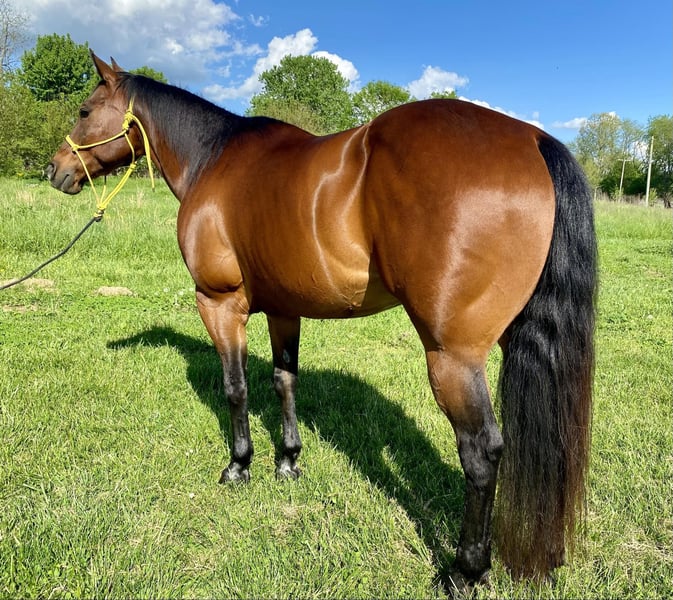 ONLINE AUCTION Place your bids at www.PlatinumEquineAuction.com Starting Bid $3500 Auction ends July 7th, 2024 Need a new saddle? Check out White Rock Saddles on our website or Facebook! This bay Ranch-type Gelding is approximately 10 year old and stands 15H. Buddy is a lovely bay with a kind expression, big body, and solid constitution. He can be fancy and do many ranch horse specialties such as side passes, spins, self loads on the trailer, and ground ties. He can also be the penultimate Family horse and be a Trail horse deluxe, has a slow lope, neck reins, and over all baby sitter. Buddy has great, bare feet, super for the Farrier, an easy keeper, baths/clips, low on the pecking order in a group, and will stand tied all day. He is currently being used as a Family/Pleasure/Trail horse. Located in Danville, IN. Contact Summer Landry 970-581-8200 with any questions. ONLINE AUCTION Place your bids at www.PlatinumEquineAuction.com Starting Bid $3500 Auction ends July 7th, 2024 Need a new saddle? Check out White Rock Saddles on our website or Facebook!