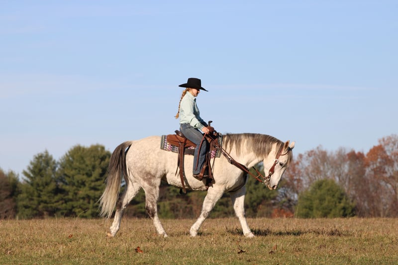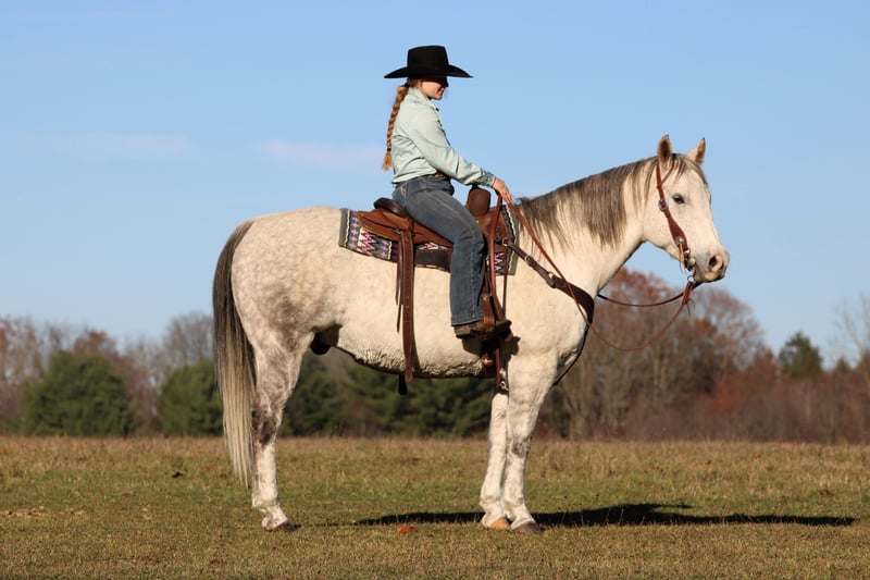 ⚜️ 𝓽𝓱𝓮 𝐇𝐨𝐫𝐬𝐞𝐦𝐚𝐧'𝐬 𝓢𝓱𝓸𝔀𝓬𝓪𝓼𝓮⚜️ Happening now thru MONDAY | DECEMBER 1st - Available EXCLUSIVELY on HorseBid's website! For more details and to register visit: www.Horsebid.com CONSIGNOR CONTACT: KS Horses 814-229-3290 LOCATION: Clarion, PA BREED: QH REGISTERED: No COLOR: Grey HEIGHT: 15 AGE: 11 GENDER: Gelding Chuck is a 11 Year Old Grey Dapple Quarter Horse Gelding. Standing 15 hands tall and stocky enough to carry any size rider but not to tall making him easy to mount and dismount. Chuck is that been there done that all around good broke safe gelding. Very quiet and gentle and easy to ride not complicated at all. Chuck is a finished ranch horse that can do all aspects of ranch work. Very seasoned when it comes to working cattle and handy to have around the ranch. The past year he has been used primarily as a family trail horse. Great on the trails and safe for the whole family to ride and build confidence with and grow with. If your a timid rider Chuck will help you build your confidence . You will love his easy one hand neck rein, smooth trot and lope, good stop and back up and side pass. Pull his bridle off and ride him with no bridle just a rope around his neck. If you want a been there done that super broke and super safe horse then be sure to check out Chuck!! We can help arrange delivery anywhere in the United States. Call or Text Glory at 814-564-2117. Thank You and God Bless