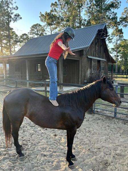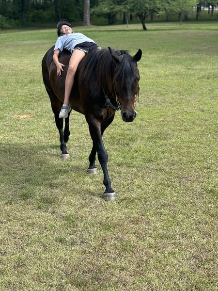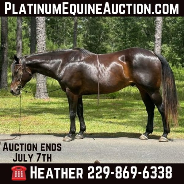 ONLINE AUCTION Place your bids at www.PlatinumEquineAuction.com Starting Bid $3500 Auction ends July 7th, 2024 Need a new saddle? Check out White Rock Saddles on our website or Facebook! Creek is a 10 yr old brown gelding that is one of the barn favorites at our ranch. Not only is he stunning to look at, he has the best puppy dog personality. Standing at 15.2 hands tall and a stocky body, he has plenty of size to carry anyone. He is the first one to meet you at the gate ready for lots of love and attention. Creek has been used at our ranch for all kinds of fun adventures. He is great on trails and never spooky or silly. Rides bareback, English, and western. He has a beautiful headset and stays very collected when riding as well as a very nice stop. Great for any level rider. He loads and unloads in the trailer with ease, stands great for the farrier and loves his bathes. If you’re truly looking for one of those all around safe family type horses, Creek is definitely one to consider adding to the family. He is up to date on coggins. Please contact Cadillac Ranch Heather 229-869-6338 for any questions or to set up a time to try Creek. Located in Dawson, Georgia. ONLINE AUCTION Place your bids at www.PlatinumEquineAuction.com Starting Bid $3500 Auction ends July 7th, 2024 Need a new saddle? Check out White Rock Saddles on our website or Facebook!