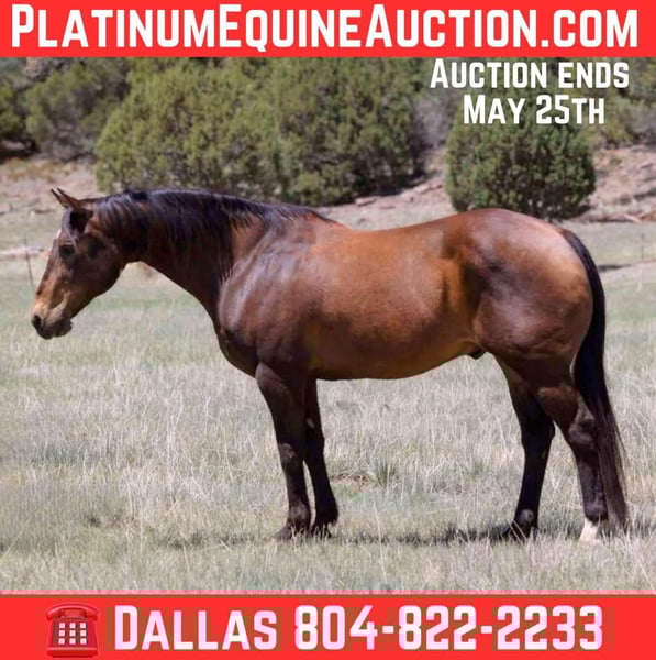ONLINE AUCTION Place your bids at www.PlatinumEquineAuction.com Starting Bid $3500 Auction ends May 25th, 2025 Need a new saddle? Check out White Rock Saddles on our website or Facebook! Bonzai is a grade 12 year old gelding standing 14.2hh. If you’re looking for a sure enough gentle, in your pocket, gentle and safe gelding then look no further, Bonzai is the gelding for you!! We’ve explored countless miles of trails all over the rough country of Arizona and Bonzai has taken great care of his riders every single time. Leave him sitting for a month, saddle up and step right on Bonzai will stay gentle and ready to adventure! Fallen logs, flowing water, thick brush, rocky terrain, steep slippery slopes, you name it Bonzai will be surefooted as can be through it all. Bonzai is not only super fun to ride outside, he’s just as fun in the arena! He will walk, trot, and lope both ways easily picking up both his leads. Bonzai enjoys attention, and is very in your pocket, always wanting to be your buddy!! Bonzai is easy to catch, and good to groom, saddle, bridle, bathe, shoe, and load. Will come with a clean coggins and health!! Transport can easily be arranged anywhere in the US!! Located in Camp Verde, AZ. Call D/C Equine Services Dallas 804-822-2233 with any questions. ONLINE AUCTION Place your bids at www.PlatinumEquineAuction.com Starting Bid $3500 Auction ends May 25th, 2025 Need a new saddle? Check out White Rock Saddles on our website or Facebook!