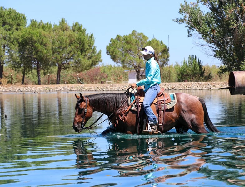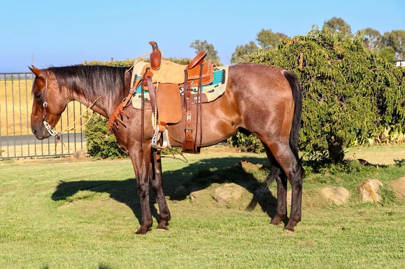 ONLINE AUCTION Place your bids at www.PlatinumEquineAuction.com Starting Bid $3500 Auction ends August 11th, 2024 Need a new saddle? Check out White Rock Saddles on our website or Facebook! Meet Arlo a 11 year old 15 hands Bay Roan Gelding! If you’re searching for the horse that combines trail expertise, obstacle proficiency, and an unbeatable friendly disposition, look no further than Arlo. This remarkable gelding has proven time and again that he is the easiest horse to own, offering a seamless and enjoyable riding experience for both intermediate and experienced riders. Arlo excels on the trails, effortlessly navigating through a variety of terrains and obstacles. Whether you’re crossing streams, traversing steep hills, or maneuvering under low-hanging branches, Arlo takes it all in stride. His confidence and surefootedness make him the perfect partner for any trail adventure. Arlo’s impressive resume includes extensive work on obstacle courses. He has confidently crossed bridges, including teeter-totter and swaying bridges, and navigated through pool noodles and waterfalls. His ability to calmly and smoothly handle these challenges sets him apart from other horses. In the arena, Arlo is a dream to ride. His trot is smooth and easy, while his canter is as silky as butter, ensuring a comfortable and enjoyable ride every time. Whether you’re practicing your skills or just enjoying a leisurely ride, Arlo’s easy and responsive nature makes him an ideal companion. Arlo isn’t just limited to trails and arenas; he’s also been ridden in town, where he’s proven to be unflappable. He remains calm and composed around all types of vehicles, from semis and motorcycles to trailers and more. Nothing seems to faze him, making him a reliable and steady partner in any environment. Arlo’s friendly nature is one of his most endearing qualities. He’s as approachable as a dog, often following you around in hopes of a snack. This “in your pocket” horse adores everyone he meets and thrives on human interaction. His affectionate personality makes him a joy to be around, whether you’re riding or just spending time in the barn. Arlo stands patiently for saddling, grooming, bathing, and farrier work. His cooperative and calm demeanor ensures that every interaction with him is a positive one. You’ll find that Arlo’s easygoing nature makes horse ownership a truly enjoyable experience. Don’t miss the opportunity to own this exceptional horse. Arlo is the perfect blend of trail prowess, obstacle expertise, and friendly personality. Whether you’re looking for a reliable trail companion, an obstacle course star, or a smooth arena ride, Arlo is the horse for you. Contact us today at KW Ranch & Perf. Horses Kamryn 530-852-2032 to learn more about Arlo and schedule a visit in Pleasant Grove, CA. ONLINE AUCTION Place your bids at www.PlatinumEquineAuction.com Starting Bid $3500 Auction ends August 11th, 2024 Need a new saddle? Check out White Rock Saddles on our website or Facebook!