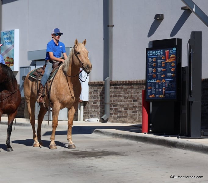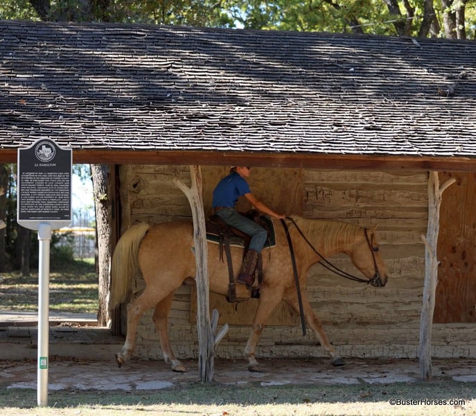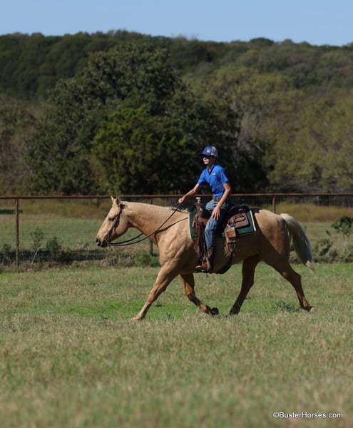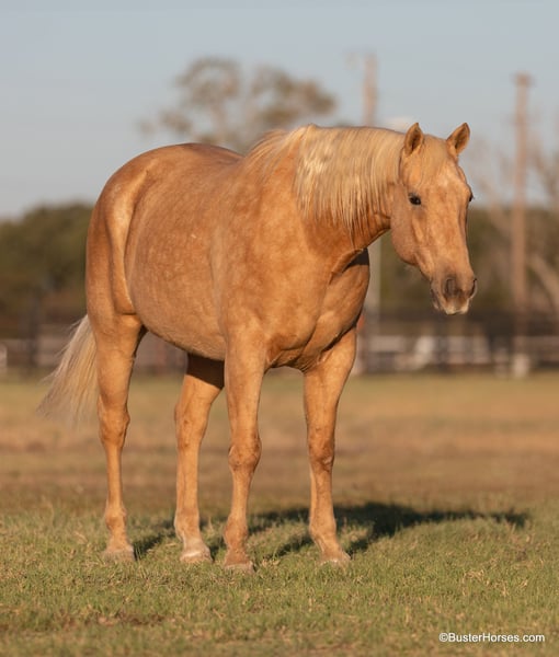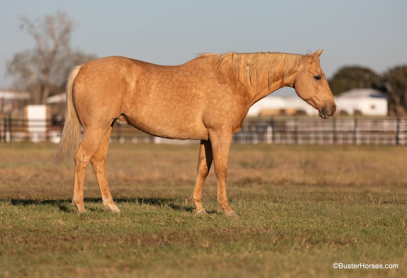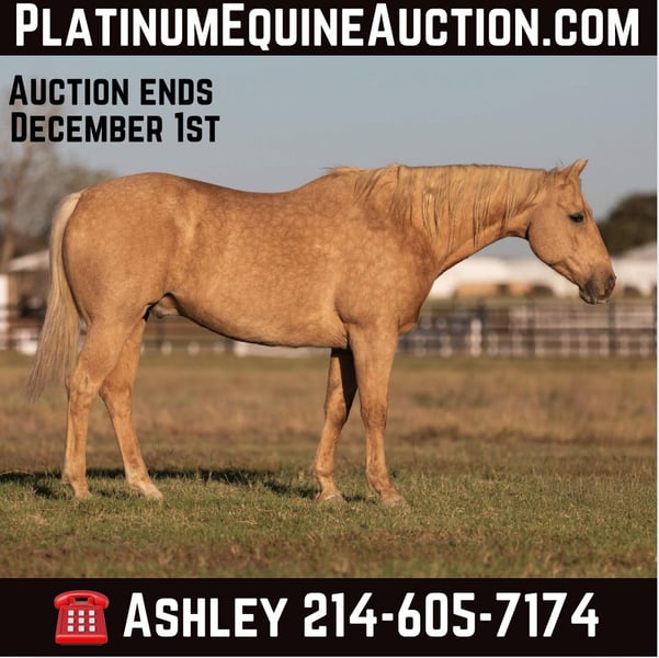 ONLINE AUCTION Place your bids at www.PlatinumEquineAuction.com Starting Bid $3500 Auction ends December 1st, 2024 Need a new saddle? Check out White Rock Saddles on our website or Facebook! “Cheesy” – 15.2H, 11 year old palomino quarter horse gelding. This is one of the kind-est, most uncomplicated, and solid geldings we have gotten ahold of this fall. He is absolutely GORGEOUS, big boned, tall, and as thick as they make them. If you are looking to mount some big people, but don’t want to go the draft cross route – then don’t look past cheesy! He is as easy to operate as they come, he is naturally low headed, and he has incredibly smooth gaits. You can pitch him away one handed and lope off with a drink in your hand if you want to – and you don’t have to be a great horseman to do it smoothly on Cheesy! He is naturally balanced, very easy to ride, not lazy, but in no hurry and not remotely hot either. If his rider is timid or nervous, Cheesy feels it and he just creeps along as slow as he can go. If his rider gets unbalanced and gets to leaning or bouncing, he literally steps underneath you, even when he is traveling at a trot or a lope! He is very easy to navigate around with one hand, and very simple to move up into a trot and a lope. He stops on a dime, but not so hard that it will throw anyone overboard either! He is an easy keeper, has great big hard feet, and is as low maintenance of a horse as you could buy. He has been there and done that and seen that, and is the same horse daily or once a year. He lives out with a pen of geldings right now, but he is happy kept up in a stall, he loves the extra attention and to be spoiled. He just had front shoes done last week, and had his teeth done by an equine dentist last month! His age isn’t just a bunch of us guessing, its been verified by 2 equine dentists, 2 vets, and also off of his history. He is the perfect age, and checks all the boxes of what everyone is looking for. He has also been used in the turn back pen, has been roped off of extensively, used on a ranch, and he knows what the barrels and the poles are (though he isn’t very fast!) – and has been ridden English at the low levels! We are headed to an entry level local holiday jumper show with him ourselves soon! He loves to go to town, is exceptionally good in traffic and commotion (he literally will take a nap in the middle of it!) and he will be a first pick when we load up to go to the upcoming holiday parades! Please call anytime for more information Buster Horses Ashley 214-605-7174 Cheesy is located in Weatherford, TX – one hour from Dallas / Fort Worth International Airport. He is an easy day trip or fun overnight trip to come try out, from anywhere! We are experienced knowledgeable sellers and we can help with quickly arranging affordable shipping to any buyer’s location – we have experience shipping horses worldwide – including regularly to Hawaii, Canada, Mexico, Europe, and South Africa. ONLINE AUCTION Place your bids at www.PlatinumEquineAuction.com Starting Bid $3500 Auction ends December 1st, 2024 Need a new saddle? Check out White Rock Saddles on our website or Facebook!